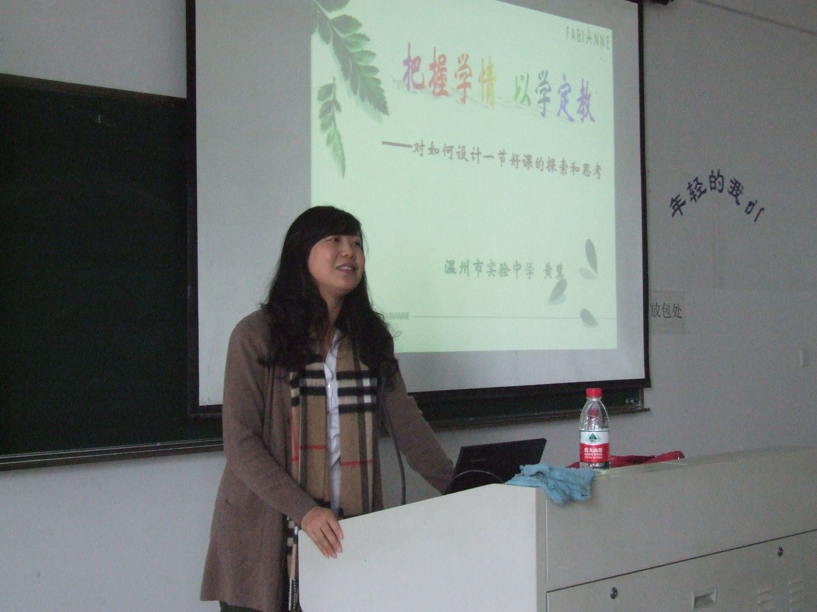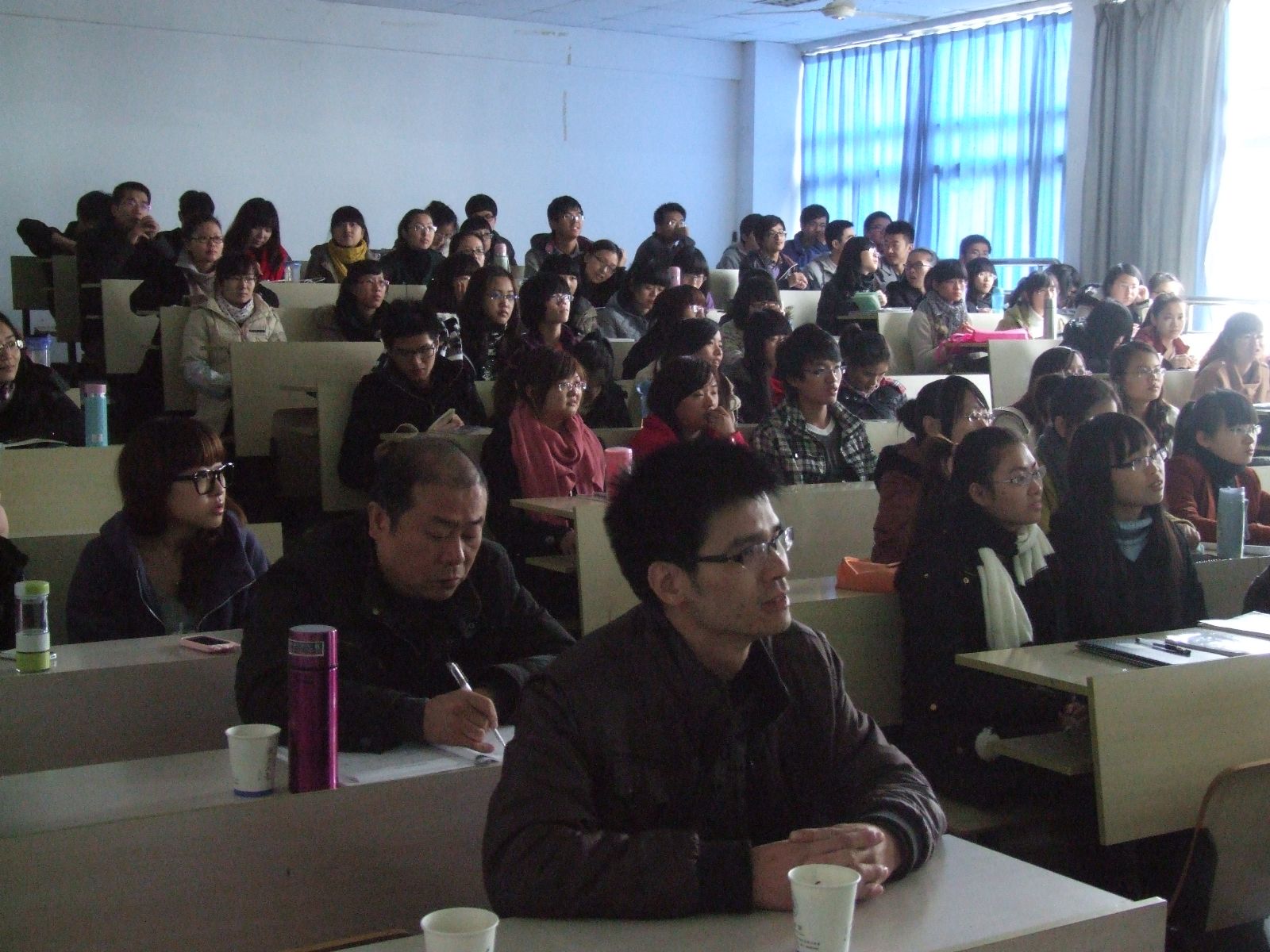 12月21日上午,温州实验中学黄慧老师应邀来到我院,为思想政治教育专业09、10学生作《初中思想品德新课标解读》讲座。讲座由思想政治教育系副主任吴志敏老师主持,于洪卿、李斌老师参加。吴老师强调了解读课程标准的重要性,勉励大家多多向黄慧学姐学习。黄慧老师介绍了尚未出版的最新的初中思品课程标准的内容,一语中的地指出"情感、态度、价值观"是初中思想品德教育的主要目标,并围绕如何实现教育目标,演绎了各种成功和失败的教学设计。整个讲座精彩纷呈,同学们感叹受益匪浅,希望能多多开设这样的教学指导讲座。