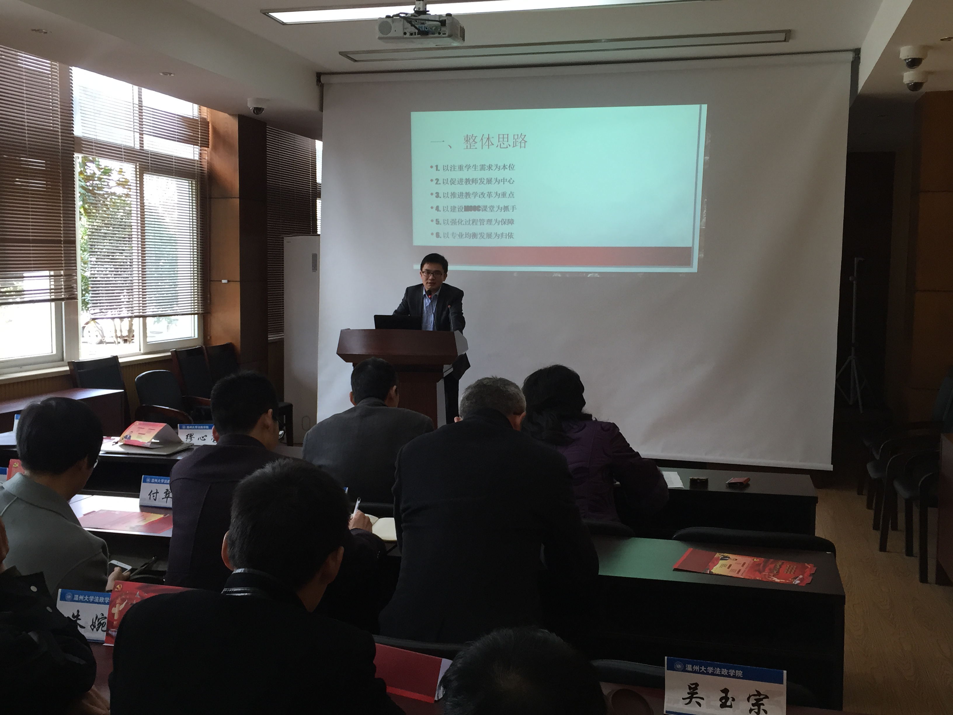 在招生改革、分类招生、分类录取的大环境下,全院应系统、策略、科学地做好专业建设,强化优势专业的地位,形成并保持已有的竞争力;要重点突破,培育新的优势专业领域;各专业要基于需求,以学生发展为根本,做好内涵建设;要结合实际,以课程教学改革为契机,大力推进MOOC课程建设、在线通识课程建设以及系列教材建设。他进一步强调,为支持专业建设,下一步学院将全面启动卓越教师培养计划,不断提高教师综合执教能力;全面推进综合实验室建设,为法政学院虚拟仿真实验教学示范中心奠定基础;在做好专业建设的同时,要整合资源,培养交叉学科复合型人才。