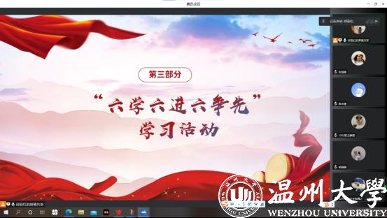 第四部分,学思践悟二十大。党员同志就“六学内容”进行思考并分享了心得体会,例如陈柯婷同志认为要始终坚持“五个必由之路”,走好“必由之路”,发挥历史主动精神,行稳致远;朱航飞同志号召所有党员同志深学笃用习近平新时代中国特色社会主义思想,努力学习,勤于实践,不懈奋斗。