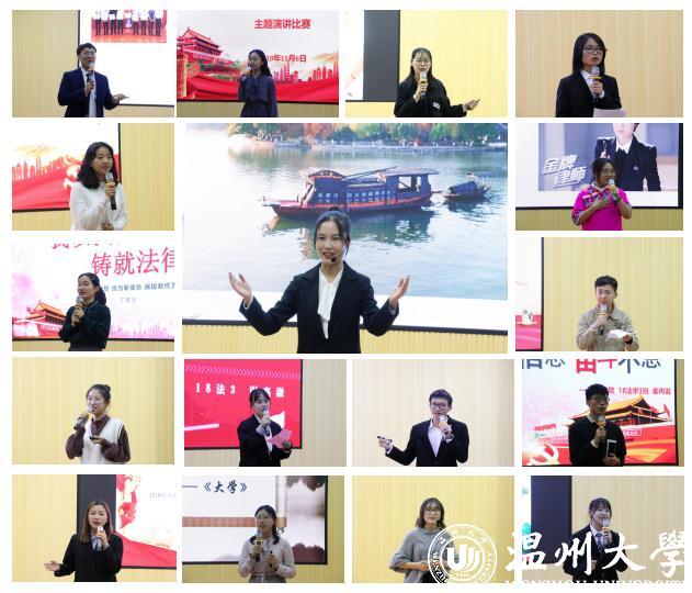 参赛选手们慷慨激昂、满怀激情,向评委和观众们阐述对“学习新思想、担当新使命、展现新作为”的感悟,深情表达了自己对祖国的热爱之情和对国家富强的自豪。有的选手结合个人成长经历讲述学习新思想的对我们当代大学生的重要意义;有的选手结合身边的事例讲述如何在日常生活中践行新思想;有的选手以法学专业为切入点,讲述作为一个“法律人”如何在自己的专业领域中担当新使命;也有选手在自己的演讲中引经据典、针砭时弊,以不同的视角讲述他们对新思想的理解。选手们的精彩演讲赢得现场观众们的阵阵掌声。