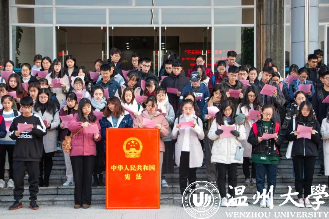 升旗仪式后,在场师生齐声诵读宪法条文,铿锵有力的宪法晨读声响彻校园。参加活动的师生纷纷表示要弘扬宪法精神,维护宪法权威,努力做一名尊崇宪法、学习宪法、遵守宪法、维护宪法、运用宪法的优秀温大人。