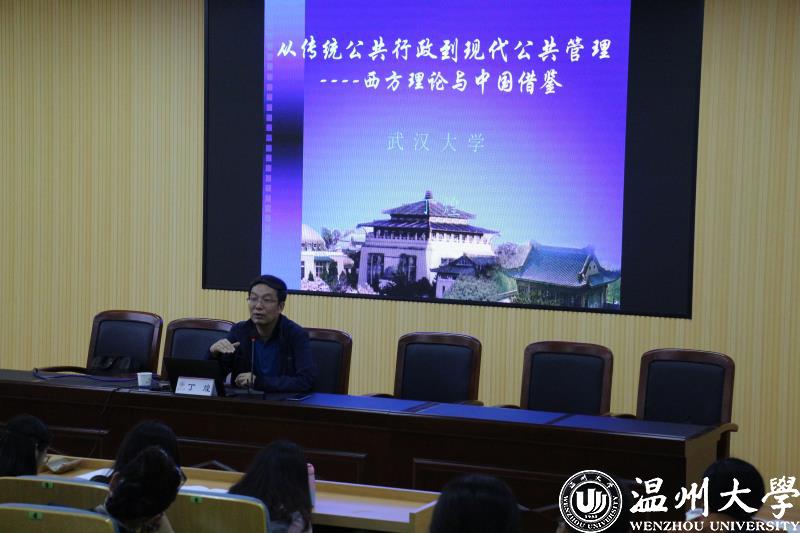10月14日下午,武汉大学政治与公共管理学院院长丁煌教授来法政学院交流、讲学。丁教授作了题为“从传统公共行政到现代公共管理——西方理论与中国借鉴”的学术讲座。讲座由法政学院陈宝胜副教授主持,麻豆师生多人前来参加。