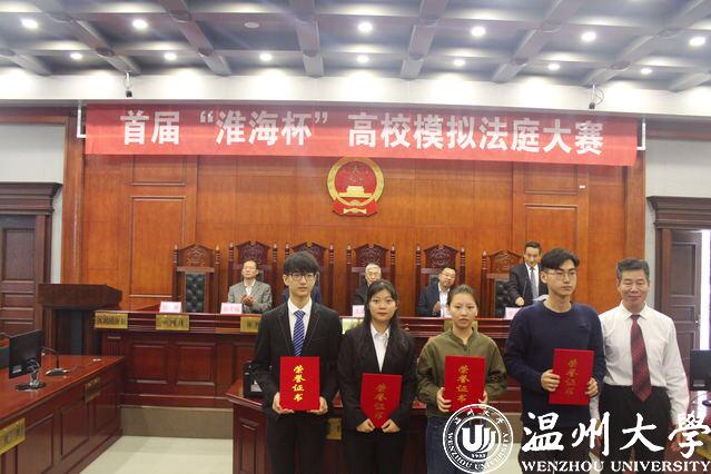 本次大赛采用公开报名制,立足于淮海经济区,面向全国。经主办方删选,最终有来自全国8个省、直辖市的西安交通大学、西北政法大学、南京师范大学、南京工业大学等17所高校的24支队伍参加本次比赛,参赛选手均为法学专业本科生和研究生,大赛评委由中国法学会法学教育研究会模拟法庭专业委员会领导和江苏省、山东省、河南省、安徽省等省的法律实务届专家组成。其中,代理人组采用单场淘汰制,温州大学代表队闯过16强、8强、4强进入决赛,最终取得大赛亚军,冠军由安徽财经大学代表队获得。