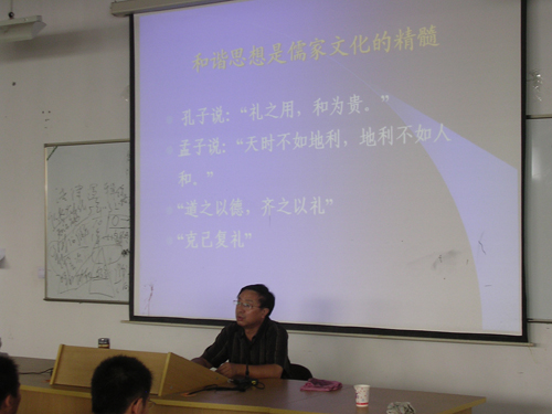 | 构建和谐社会是新一届党中央提出的治国方针,是我们党从中国特色社会主义事业的总体布局和全面建设小康社会的全局出发提出的重大战略任务,实现社会和谐、建设美好社会,是中国人民的奋斗目标。为更好的理解这一思想,10月18日,法政学院组织了"构建和谐校园、和谐社会"的专题讲座。 辅导员林丽丽老师主持了此次讲座,学院党总支书记陈国治教授围绕"大学生要争当构建社会主义和谐社会的排头兵"展开论述:主要阐释了和谐社会的概念和内涵;构建和谐社会问题提出的背景;对如何构建和谐社会问题进行了论述,特别在 "立足校园,高校学生应如何争做构建和谐社会的排头兵"的问题上做了详尽的分析讲解。 本次活动,06届全体新生参加了讲座。通过讲座,同学们理解了和谐社会的内涵,懂得了和谐社会是中国特色社会主义的本质属性,是国家富强、民族振兴、人民幸福的重要保证,体现了全党全国各族人民的共同愿望。本次讲座很好的贯彻了"温州大学和谐校园建设"大会的精神,提高了同学们对 和谐校园建设重要意义的认识。