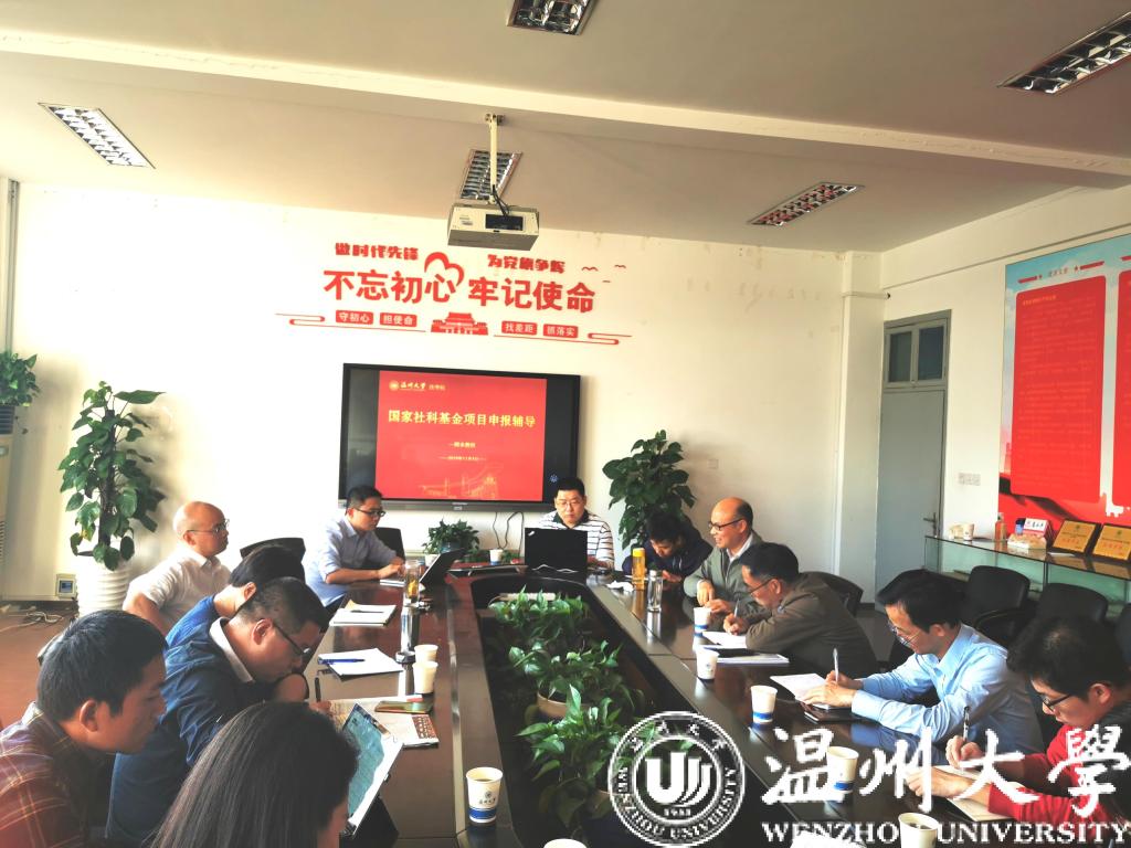 2019年11月4日下午,邱本教授应邀为学院教师辅导国家社科基金项目申报。王宗正院长、缪心豪副院长、周湖勇副院长、付翠莲教授等十几位有意向申报国家社科基金项目的教师参加活动。此次活动由缪心豪副院长主持。