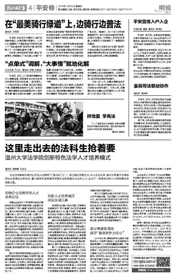 企业法务被视为现代公司法人治理的“三驾马车”之一。浙江温州民营企业、中小企业众多,温州大学基于区域经济社会发展及办学定位,着力跨学科培养服务民营企业的卓越企业法务人才,走出了一条特色法学人才培养模式的创新之路。