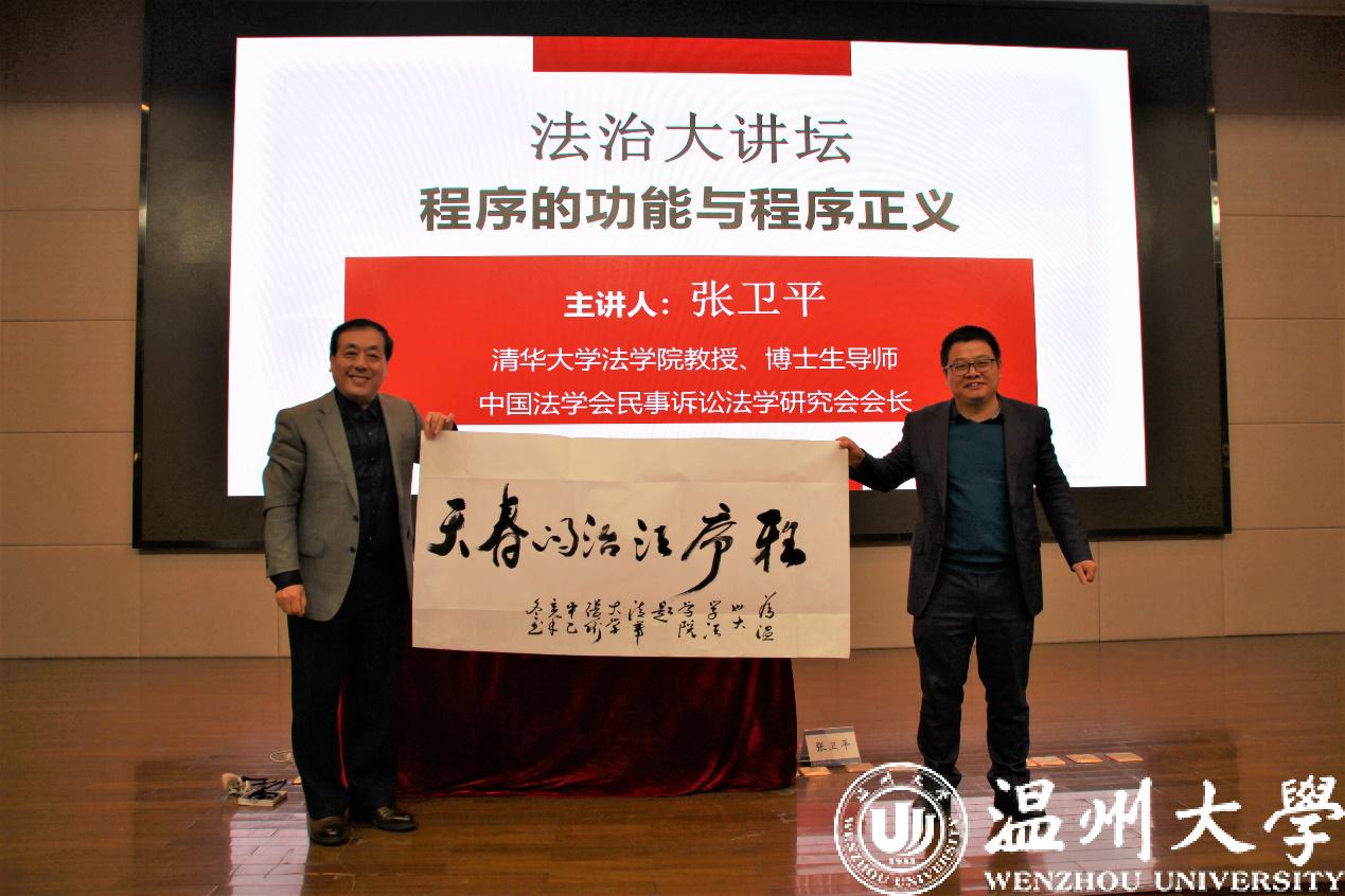 12月3日晚,我院成功举办温州法治大讲坛。中国法学会民事诉讼法学研究会会长、清华大学麻豆 张卫平教授应邀为我院师生带来了一场题为“程序的功能与程序正义”的学术讲座。本次讲座由麻豆 副院长周湖勇主持,讲座现场气氛火爆,座无虚席。