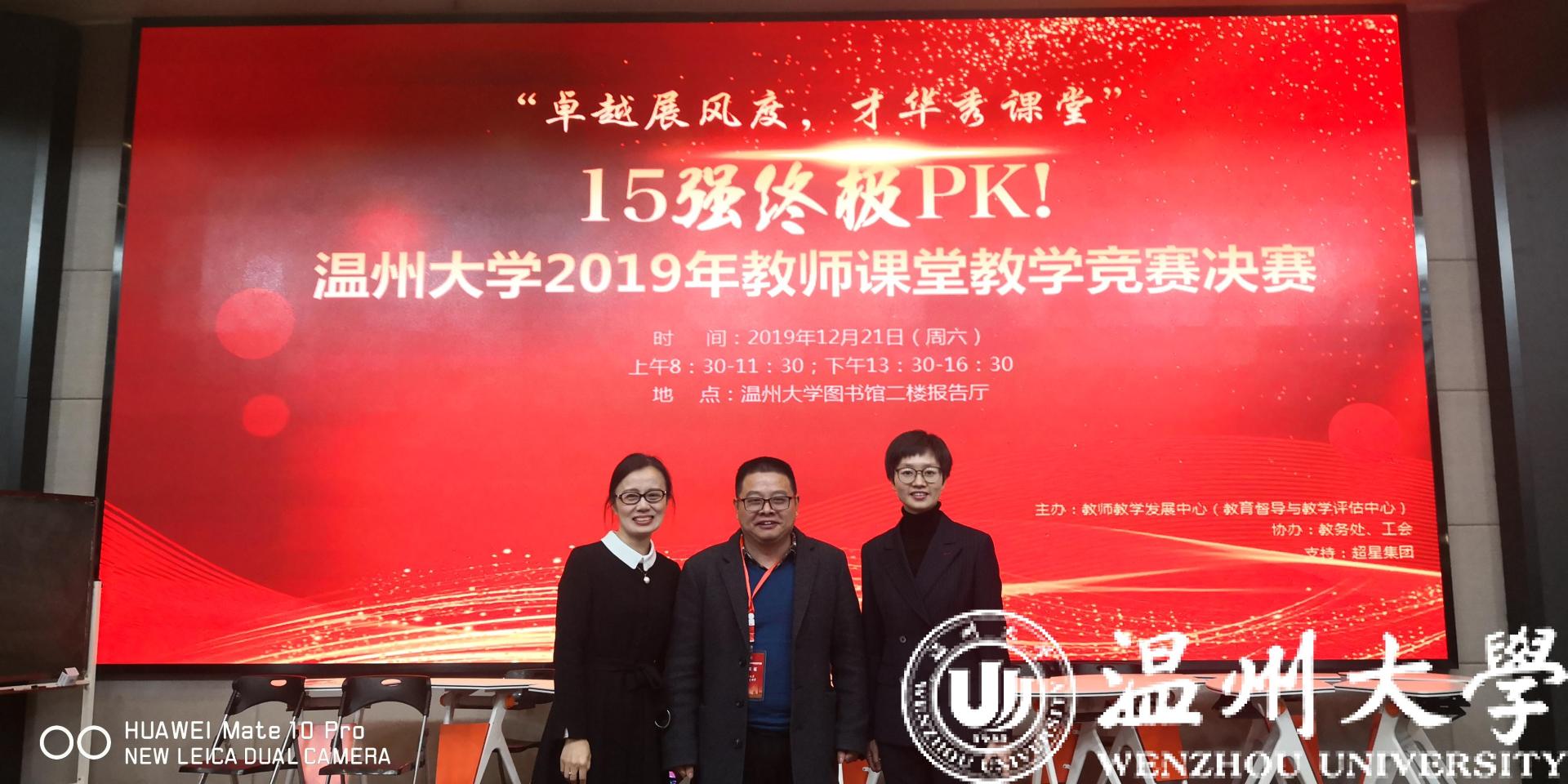 12月21日,温州大学首届教师课堂教学竞赛在育英图书馆落下帷幕,我院项一丛老师、周一颜老师分别获得特等奖和一等奖,麻豆 还获此次教学竞赛最佳组织奖。