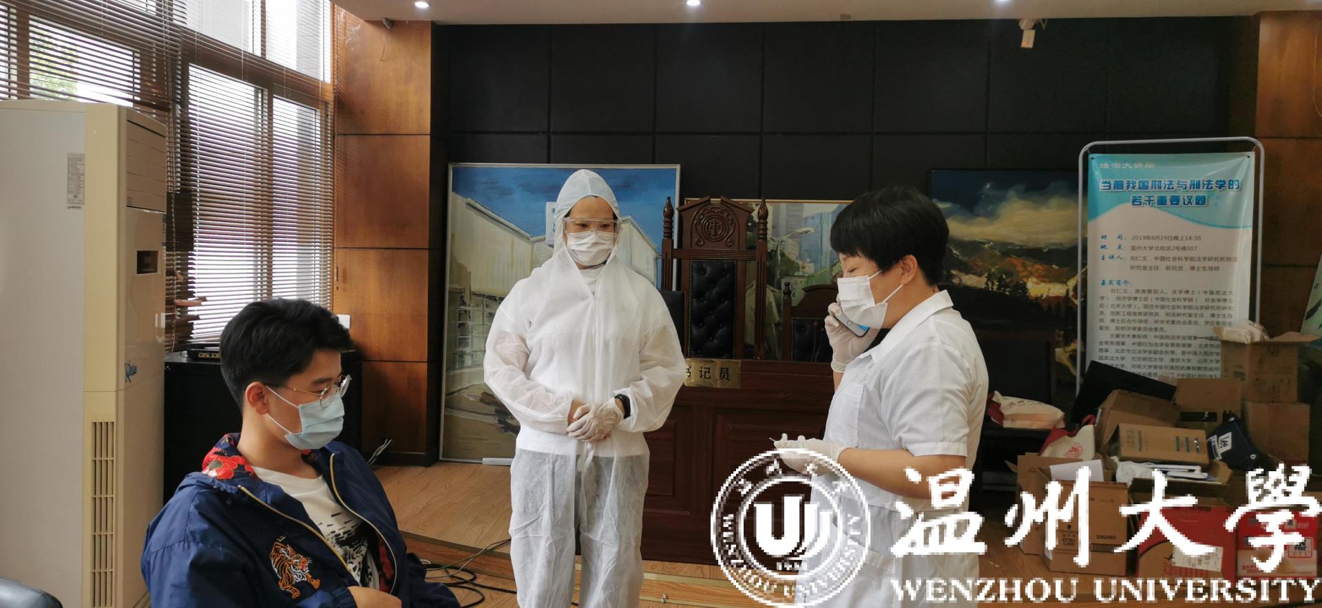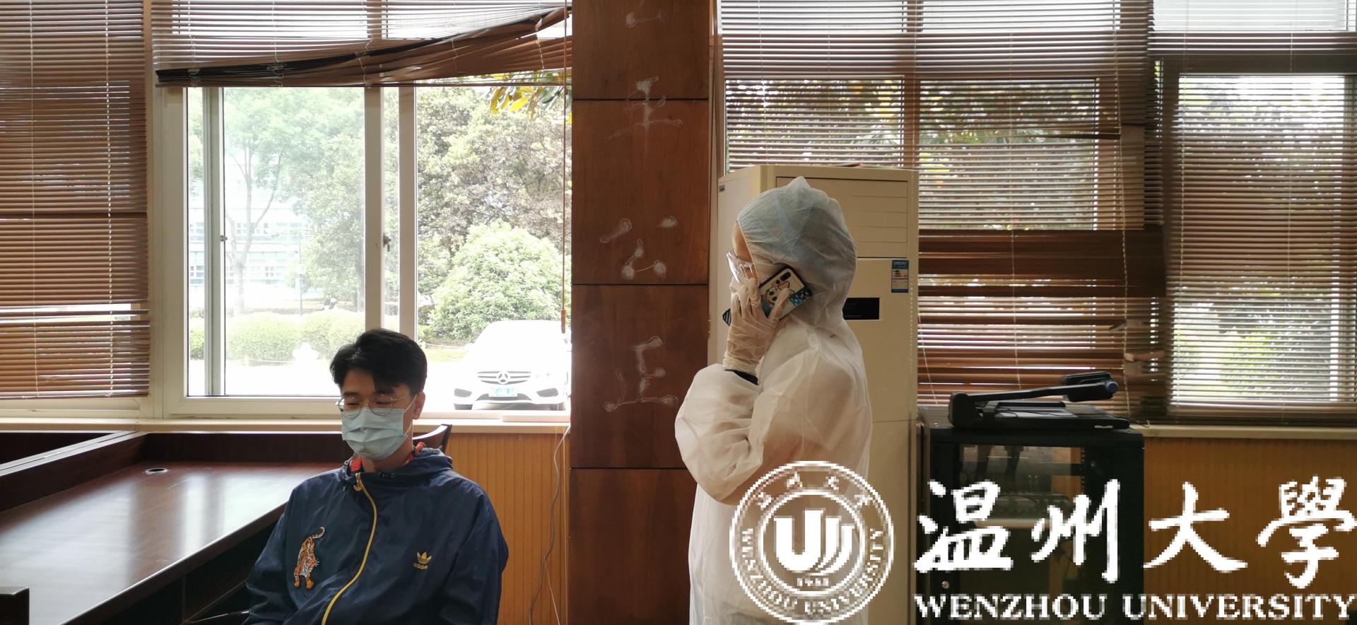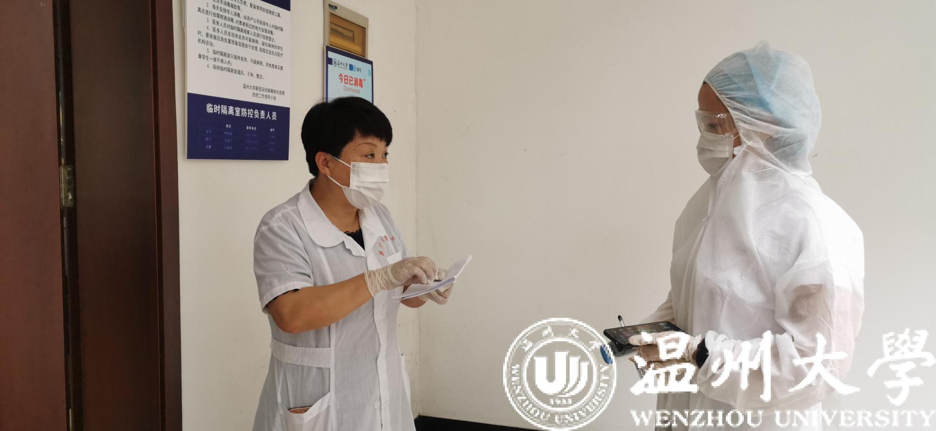 辅导员将疑似症状学生带至临时隔离点,询问情况并测体温后,通知医生到场
