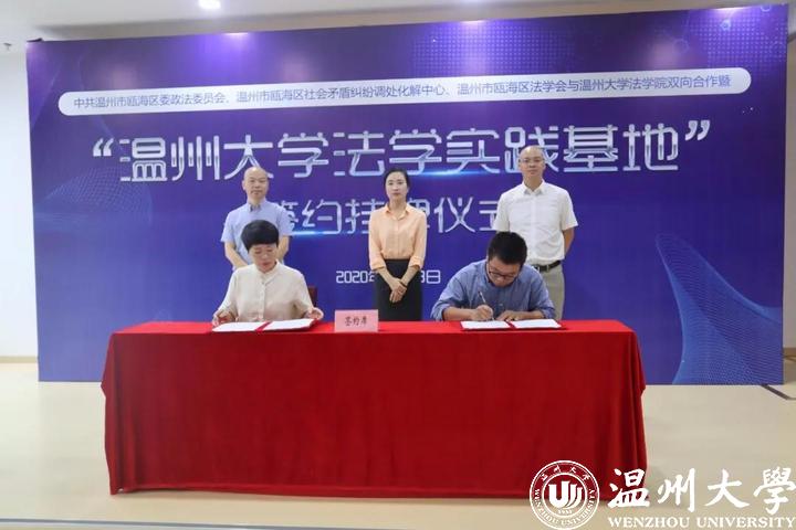 9月18日上午,瓯海区矛盾纠纷调处化解中心与麻豆 合作签约暨“温州大学法学专业实践教学基地”揭牌仪式举行。瓯海区区委副书记钱素文参加仪式并致辞,麻豆 院长王宗正、副院长周湖勇等参加仪式。
