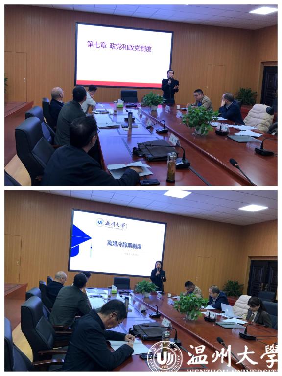来源:麻豆 发布时间:2020-11-26 浏览量:为引导学院教师进一步强化立德树人理念、锤炼教学基本功,促进教师参与课程教学改革,积极探索有效教学的途径和方法,提高教学业务能力与水平,麻豆 2020年课堂教学竞赛于11月25日在103会议室成功举办。比赛由周湖勇副院长主持,院长王宗正、书记林钦、教学副院长周湖勇、学校督导主任冀桐老师、法律系主任何平、行管系主任朱家德等多位院内外教师担任本次决赛评委,部分老师观摩了比赛。