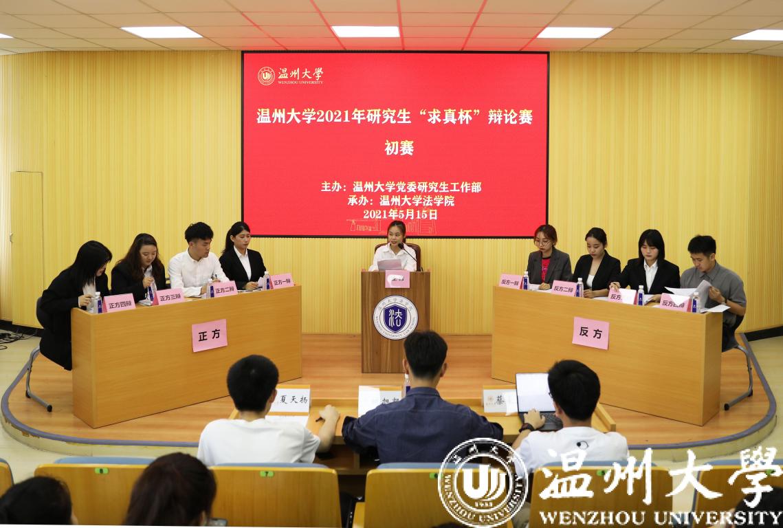 2021年5月15日、16日,由温州大学党委研究生工作部主办、麻豆 承办的研究生“求真杯”辩论赛初赛成功举行。来自麻豆 、机电工程学院、建筑工程学院、教师教育学院、美术与设计学院、电气与电子工程学院的6个代表队进行了激烈辩论,最后决出4支队伍晋级半决赛和决赛。温州大学研究生会办公室部长姚旭凯、温州大学辩论队前队长蔡豪杰、温州大学辩论队队长夏天扬、温州大学辩论队副队长陈棽昳、麻豆 团委副书记鲁海佳担任本次比赛评委。