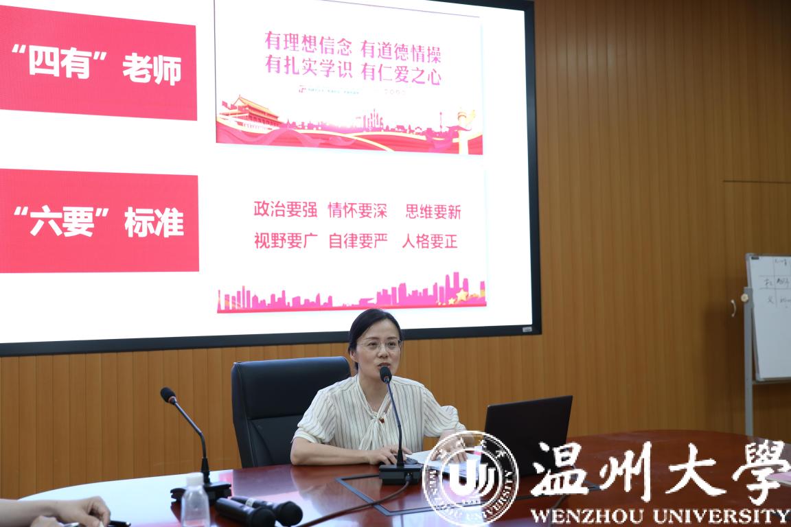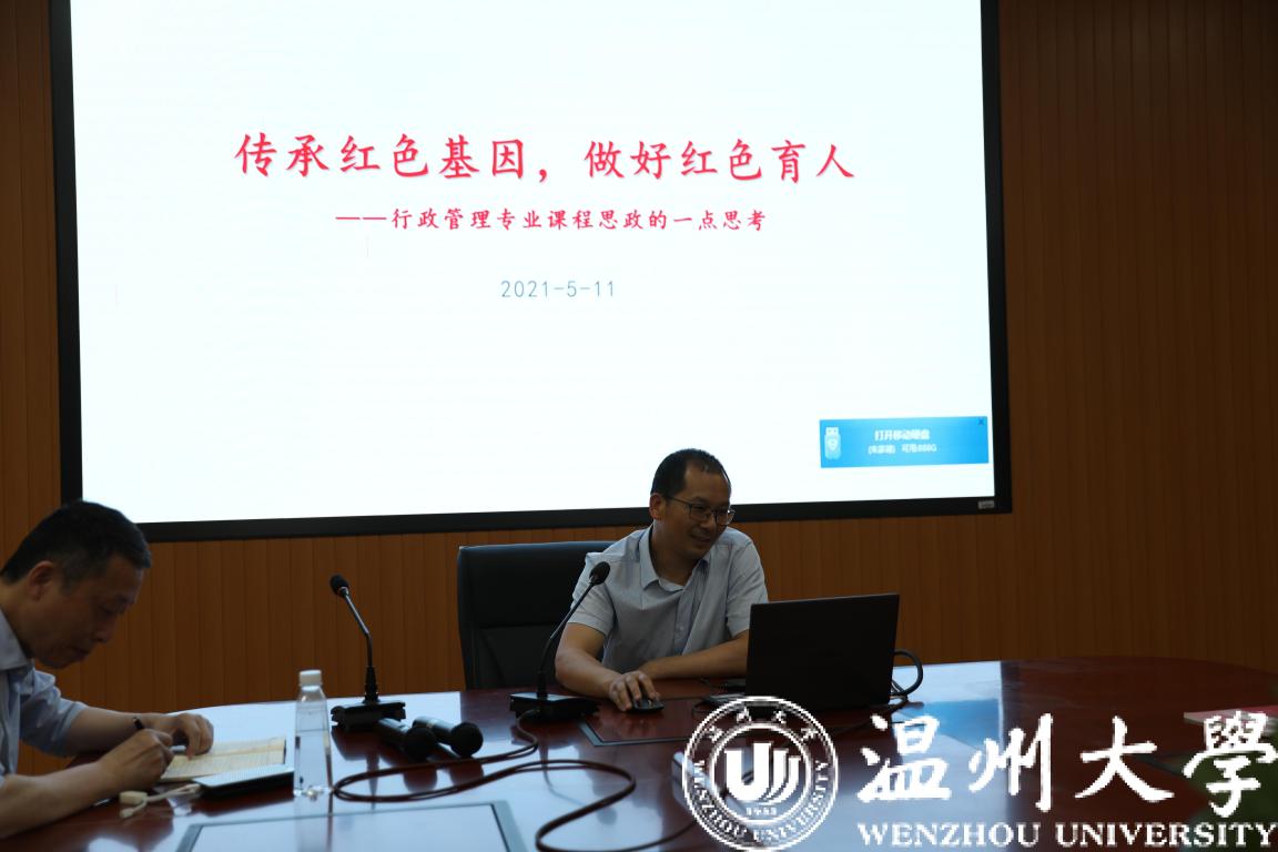 为深入贯彻落实教育部《高等学校课程思政建设指导纲要》、浙江省教育厅《浙江省高校课程思政建设实施方案》以及《温州大学推进课程思政实施方案》等文件精神,全面推动学校课程思政体系建设,构建三全育人格局,落实立德树人根本任务,按照学校统一部署,5月11日下午,我院集中组织全体教师在103会议室以线上线下相结合的形式,召开课程思政建设研讨会。学院领导班子成员、全体教师参加了此次会议。会议由学院党委书记林钦主持。