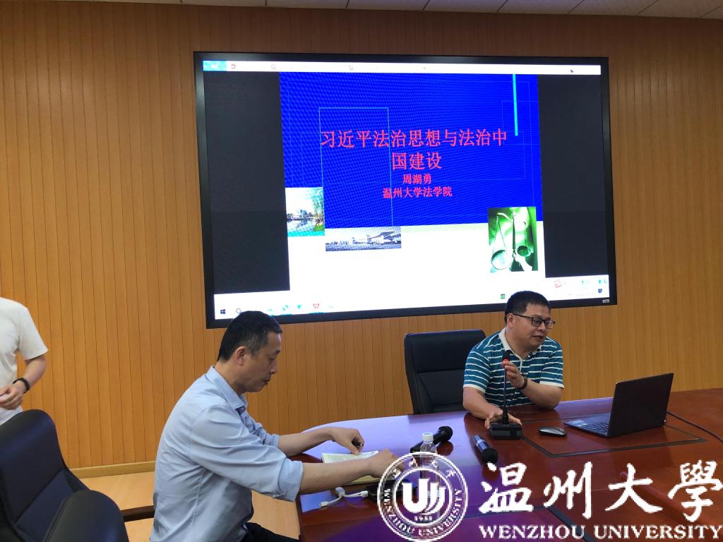 接着,周院长围绕《习近平法治思想与法治中国建设》做了专题分享。专题围绕习近平法治思想概述、习近平关于法治中国基本理论的论述、习近平关于法治中国推进方略的论述、习近平关于关于法治重大关系的论述、将习近平法治思想纳入人才培养方案的思考等五个方面进行阐述,指出习近平法治思想深刻回答了全面依法治国由谁领导、为了谁等根本问题,科学指出了新时代法治中国建设的总方针。周院长强调习近平法治思想是法学教育和法治人才培养的根本遵循,在法学专业教学中应贯穿融入习近平法治思想,全面培养德法兼修、明法笃行的合格法治人才。