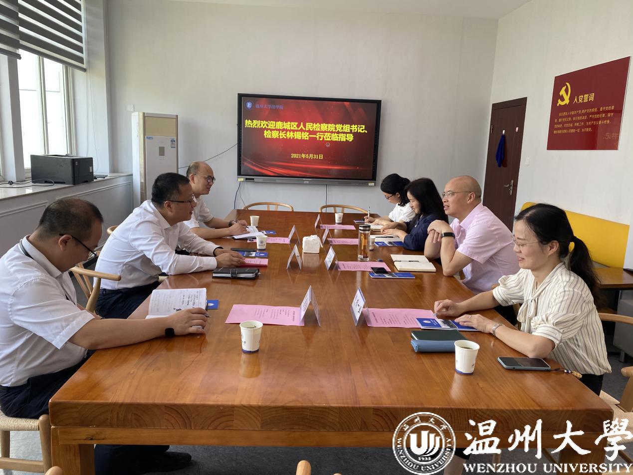 5月31日上午,鹿城区人民检察院党组书记、检察长林锡铭一行来我院调研座谈,王宗正院长、院长事务助理兼法律系主任何平等出席会议。