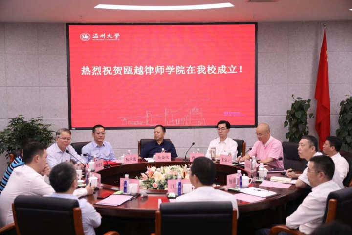 吴金法副书记用三句话总结了瓯越律师学院成立的基础:一是社会有需求,温州青年律师人才数量庞大,律师队伍发展很快,瓯越律师学院对培养高素质的律师人才,推动温州市律师行业高质量发展,更好的服务温州地方经济社会发展有重要意义;二是温大有基础,温州大学多次与司法局、仲裁委员会等有关单位进行深度合作;三是温大有信心,充分发挥法学专业的优势,积极打造律师培养基地。总之,温州大学有信心将瓯越律师学院建立成具有全国知名度的实践性的法律教育培训平台。
