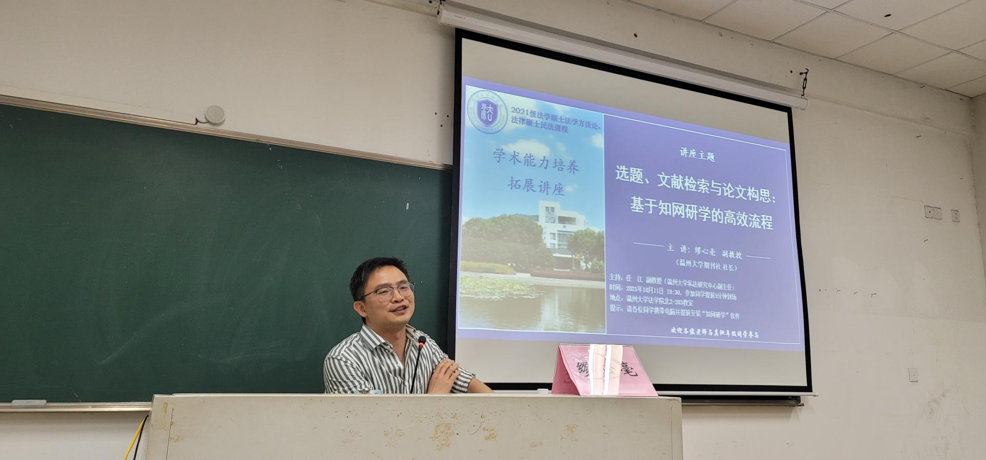 2021年10月11日星期一晚,温州大学期刊社缪心毫社长应邀做客麻豆 ,开展关于“选题、文献检索与论文构思:基于知网研学的高效流程”的专题讲座。讲座由任江副教授主持,全院100多名师生参与了本次讲座。