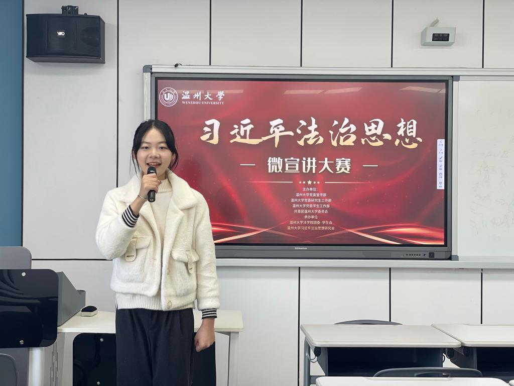 温州大学还在宪法宣传周陆续开展了“习近平法治思想”微宣讲大赛、读书分享会、普法剧进校园等活动。学校拍摄普法宣传系列微电影,鼓励学生踊跃参加“宪法卫士”行动计划,通过以赛促学、以赛促讲的方式,引领青年学生积极学习习近平法治思想,做习近平法治思想的忠实崇尚者、深入研究者、积极传播者和坚定捍卫者,号召师生知法、学法、懂法,在今后的学习生活中善于运用法治思维解决问题,讲好法治故事,传播法治思想,争做新时代的法治建设者和接班人。
