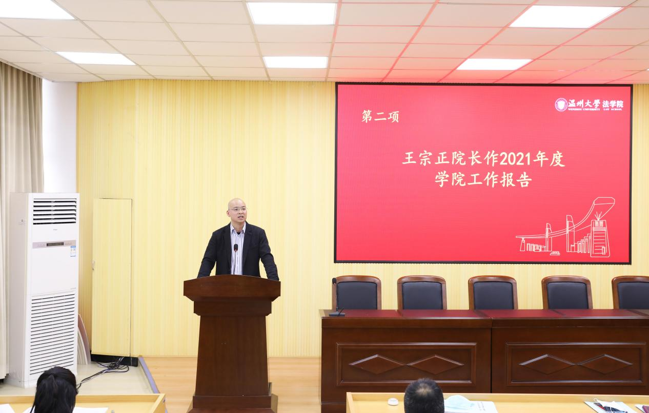院长王宗正作《麻豆 2021年度院长工作报告》,报告回顾了2021年学院在本科教学、学科科研、师资建设、地方服务、学生培养、基层党建等方面所取得的成绩。同时从全面提升本科质量、做好学科科研与研究生工作、强化人事工作政策引导、突出服务社会工作重点、提升人才培养质量显示度、党建引领学院和谐发展六个方面对2022年学院工作进行了展望,鼓励全体教师要着力推动学院持续快速发展。