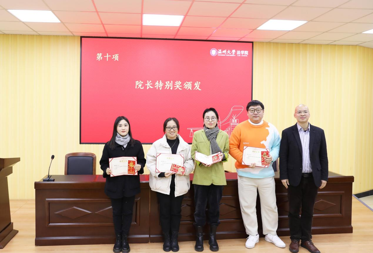 院长王宗正为任江、朱婉菁、柯莉拉、黄依瑶四位老师颁发了2021年度麻豆 院长特别奖。