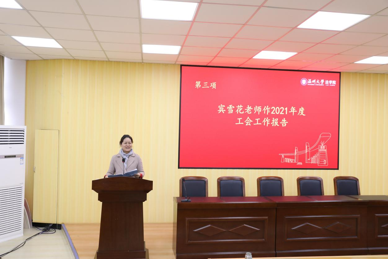 学院分工会主席宾雪花老师作《麻豆 2021年度工会工作报告》,报告回顾了学院第五届工会委员会在过去的一年里全面履行的工会职责,较好地完成了工会的各项工作任务。同时对学院领导和全体老师对工会工作的配合和支持予以衷心的感谢。