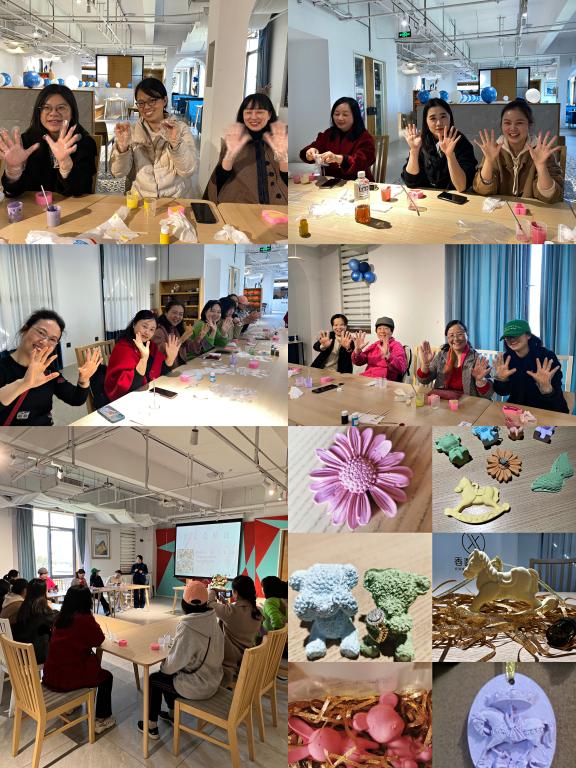 午餐之后,我们开展“香遇春天”香薰扩香石DIY活动。我们跟随老师从石膏的配料、搅拌、放入模具、出模、加香薰精油等步骤操作,最后创作出一个一个造型别致的作品:有花、鹿、马、熊、兔子等,细细嗅去,淡淡的清香沁人心脾。