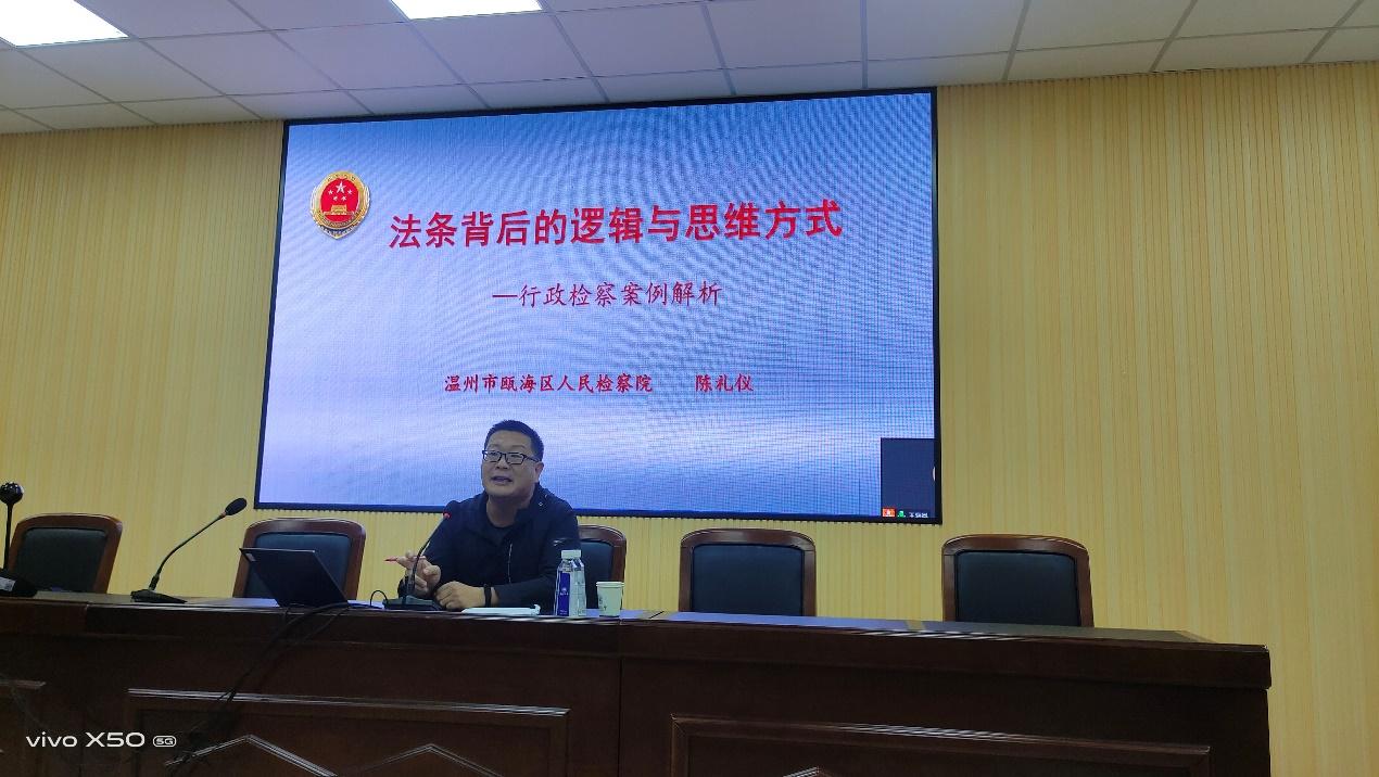 11月15日下午,温州市瓯海区人民检察院陈礼仪检察官应邀做客“罗山法律实务讲坛”,为麻豆 师生带来主题为《法条背后的逻辑与思维方式——行政检察案例解释》的讲座。本次讲座采取线上线下相结合的方式,分别在麻豆 301会议室和腾讯会议直播间进行。讲座由民商经济法系主任、法律实务课程——《法律案例研习(二)》的负责人李勇军副教授主持,麻豆 2019级本科生160多人和部分研究生及教师以线上或线下的方式参加了本次讲座。