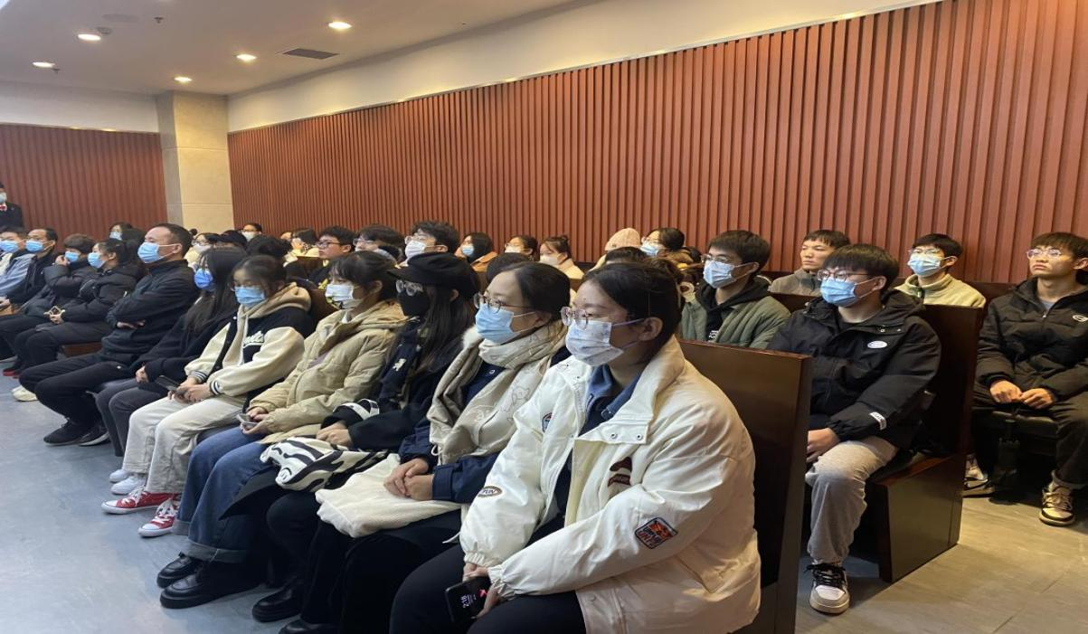 在结束法院的内部参观后,同学们进入庭审现场旁听了一起检察院提起的故意杀人刑事案件。通过旁听庭审,同学们对案件的内容及争议有了一定的了解,并进行深刻思考,对故意杀人及故意伤害在司法实践中的区别有了进一步的认识。