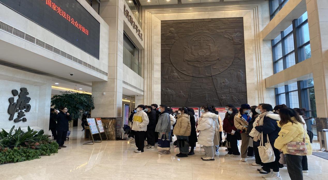 2022年12月1日下午,20法学3班在项一丛老师的带领下前往温州市龙湾区人民法院展开见习活动。到达目的地后,同学们首先由法院综合办公室的工作人员带领前往法院的审判大楼进行参观。之后,法院的讲解员通过墙上的巨幅壁画及篆刻的我国发现最早、最完整的诉讼判决书,介绍了龙湾法院的发展历程。随后,同学们被带到审判区域,依次参观了家事法庭、行政争议调解中心及审判庭内部。