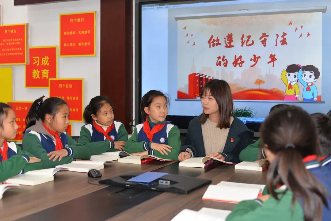 湖州市织里镇晟舍小学开展了“弘扬宪法精神 厚植爱国情怀”系列活动。在升旗仪式上,全体学生诵读了《中华人民共和国宪法》节选内容,感受宪法的尊严和精神。各班还开展了“做遵纪守法的好少年”主题班会。