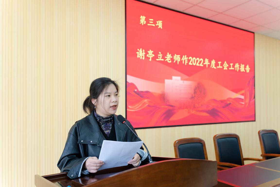 学院分工会委员谢亭立作《麻豆 2022年度工会工作报告》,报告回顾了学院第五届工会委员会在过去的一年里全面履行的工会职责,较好地完成了工会的各项工作任务。同时对学院领导和全体老师对工会工作的配合和支持予以衷心的感谢。