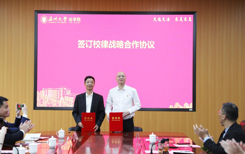 温州大学90周年校庆之际,双方以此为契机建立“校律共建”战略合作关系,今后将通力协作,展开更宽领域、深层次的合作。通过战略合作,可以更好地打通理论知识与法律实务之间的通道,律所和学校之间互通有无,相互促进,续写“校律合作”新篇章,为国家的法治人才培养做出更大贡献。