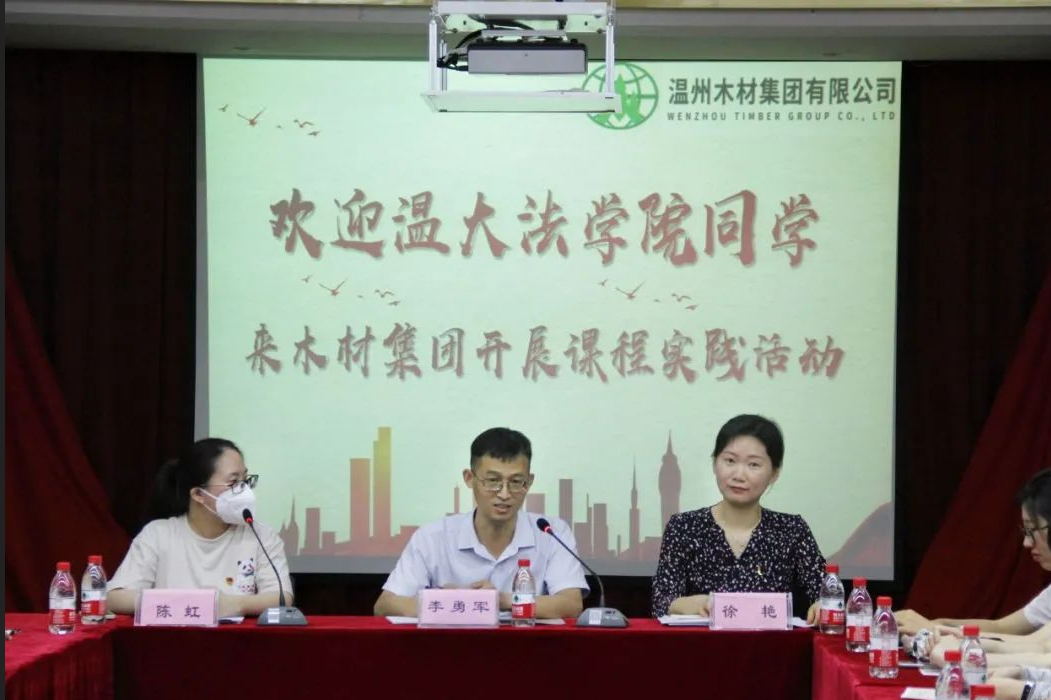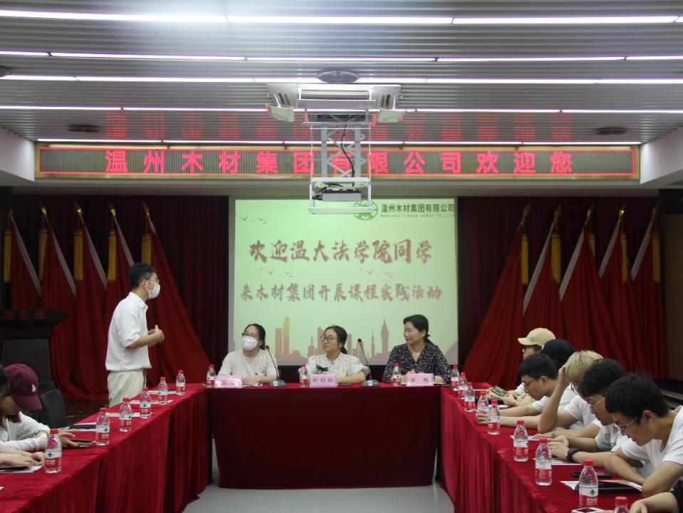 为贯彻人才培养战略,深化校企联系合作,6月14日,60余名温州大学法学专业学子在民商经济法系主任李勇军和麻豆 老师柯莉拉的带领下,赴木材集团开展企业法务实践活动。木材集团相关部室负责人陪同参观。