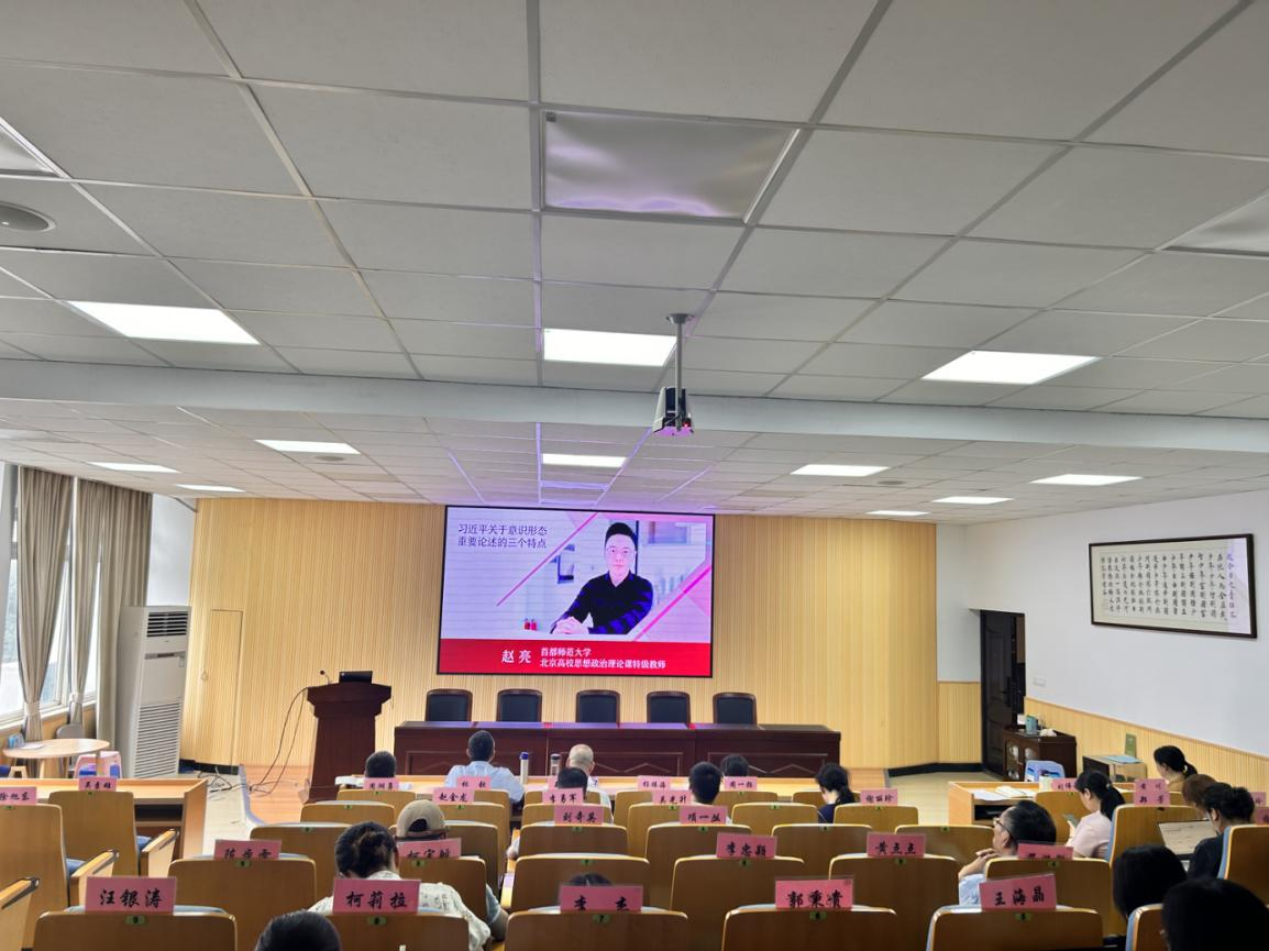 全体教师深入学习领会习近平总书记关于意识形态工作的重要论述。在党的二十大报告中,习近平总书记强调要“建设具有强大凝聚力和引领力的社会主义意识形态”,并作出重要部署,为新时代新征程上做好意识形态工作提供根本遵循。我们要以党的二十大精神为指引,增强做好意识形态工作的政治自觉、思想自觉、行动自觉,把建设具有强大凝聚力和引领力的社会主义意识形态作为为国家立心、为民族立魂的工作抓紧、抓实、抓细、抓牢,不断巩固马克思主义在意识形态领域的指导地位,巩固全党全国人民团结奋斗的共同思想基础,为全面建设社会主义现代化国家、实现中华民族伟大复兴中国梦的奋斗目标提供强大精神力量和坚强思想保证。