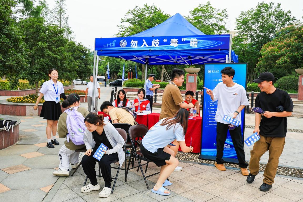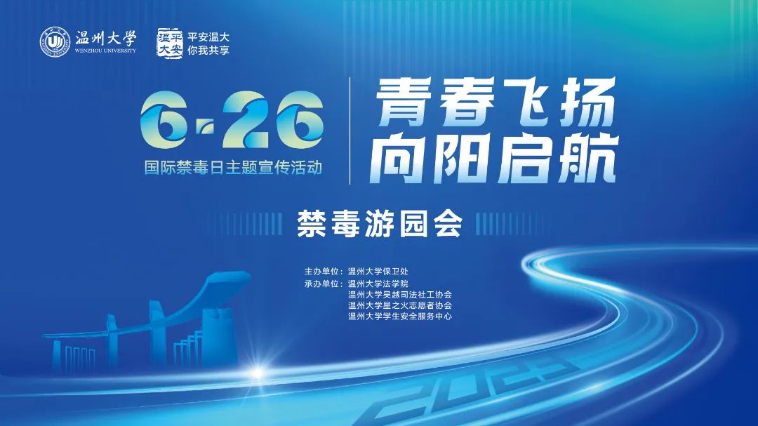 为全面营造全民禁毒宣传月活动氛围,助推温州市“全国禁毒示范城市”创建工作,进一步增强在校学生识毒、防毒、拒毒、禁毒意识,在第36个“6·26”国际禁毒日来临之际,温州大学保卫处联合麻豆 开展“青春飞扬,向阳启航”——禁毒主题游园会,活动吸引了温州各大高校学生广泛参与。