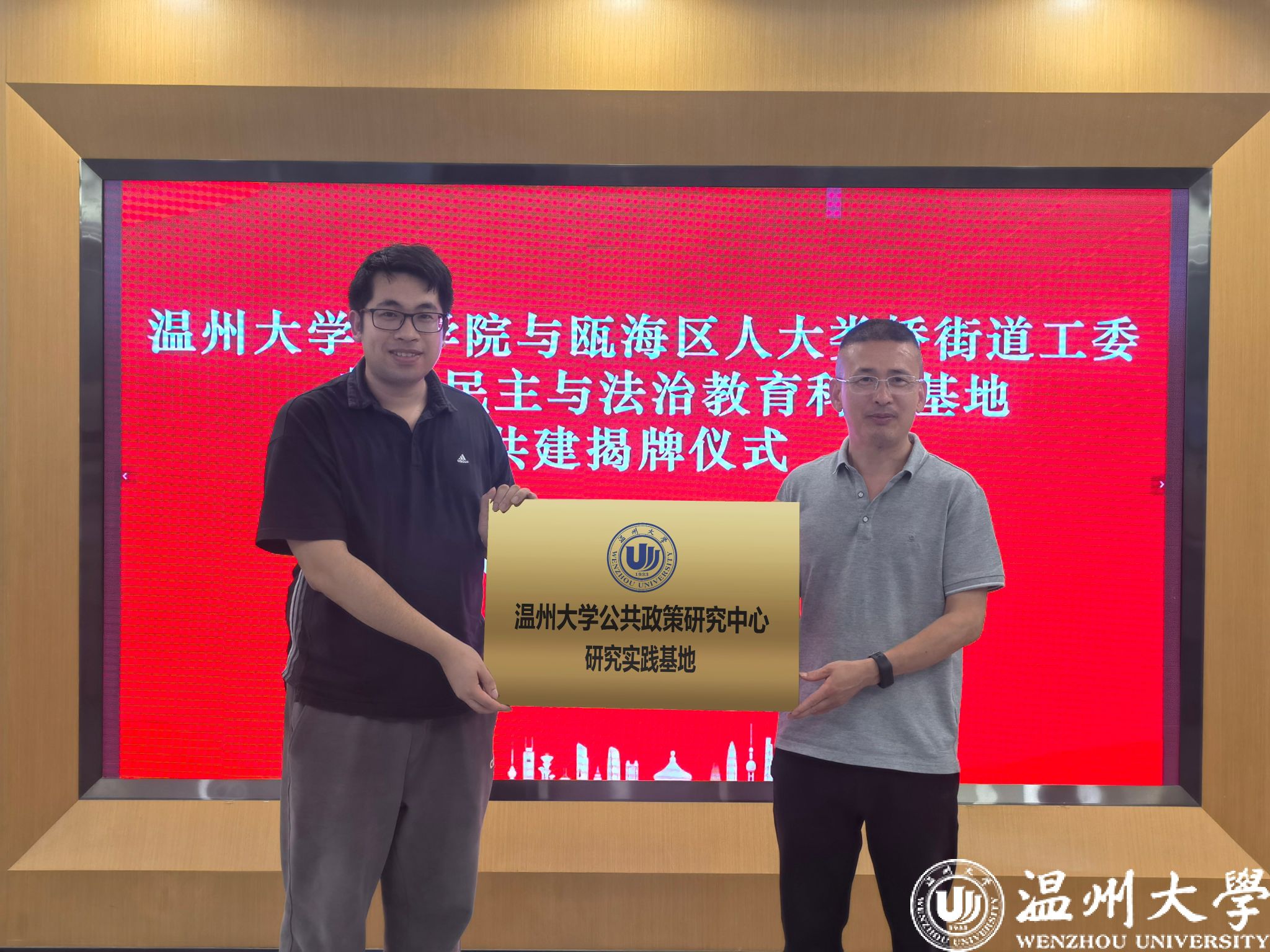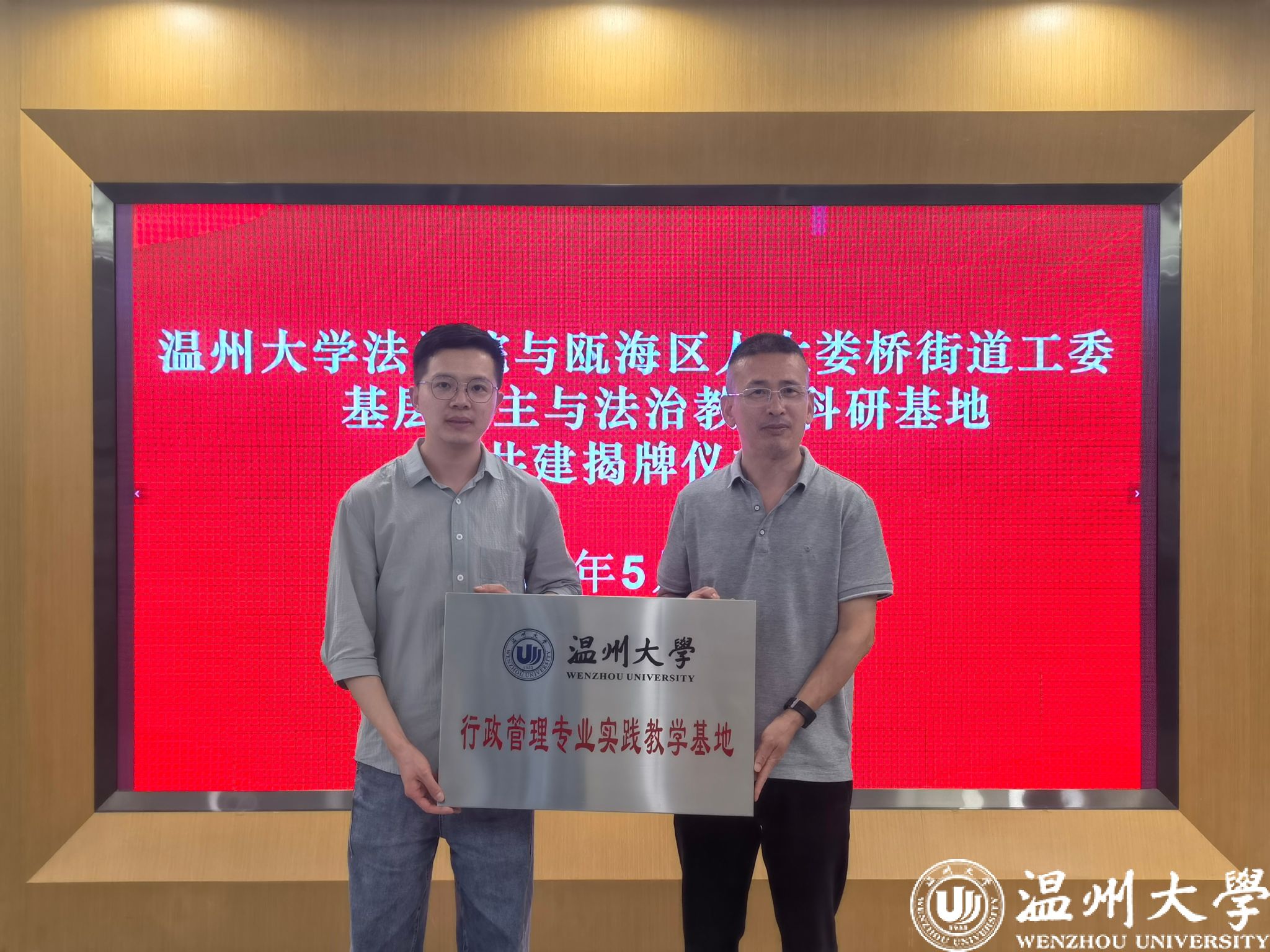 为深化校地合作,赋能基层民主与法治,5月23日下午,麻豆 院长王宗正、学术副院长张鹏、培训中心副主任范兴科、国家安全教育教研室副主任常飞以及温州大学公共政策研究中心秘书长林传学等一行赴温州市瓯海区娄桥街道人大代表联络站考察交流,并进行麻豆 实践教学基地合作协议签约仪式,为共建MPA研究生、行政管理专业本科生实践教学基地以及公共政策研究中心研究实践基地授牌,推动麻豆 与瓯海区娄桥街道校地合作基础走深走实。瓯海区人大常委会副主任周金平、瓯海区人大监察和法治司法工委主任张崇华出席活动,娄桥街道党工委书记陶琼伟,娄桥街道人大工委主任林胜国、副主任李云岳等陪同。