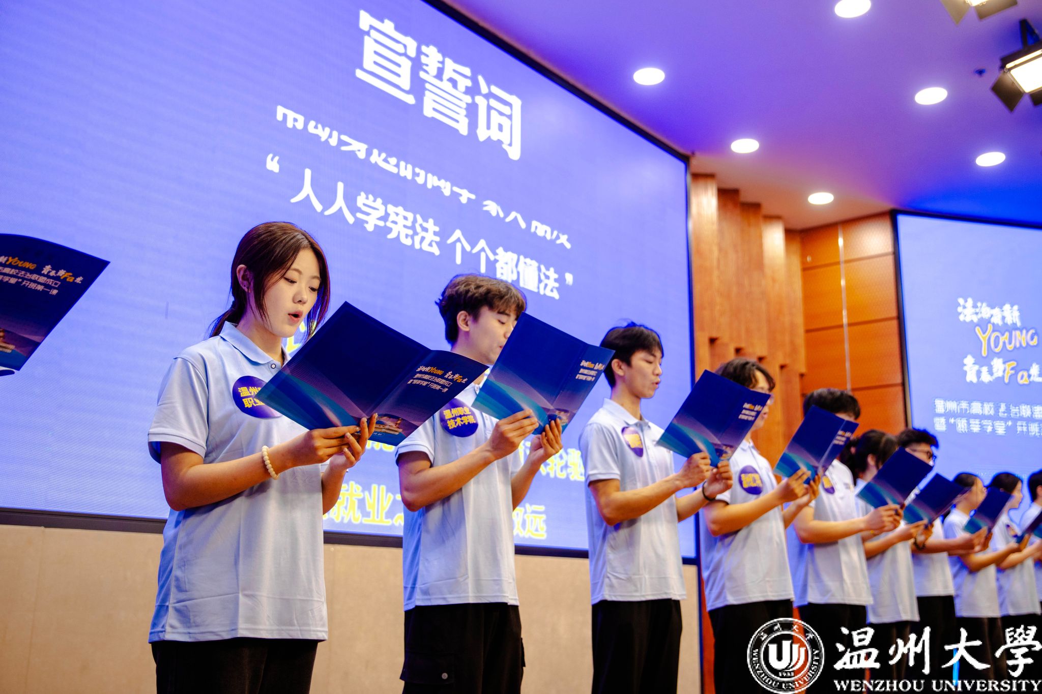 “我自愿成为法治建设的践行者、法治文化的传播者、公平正义的守护者!”铿锵誓言在温大校园里回荡,来自11所高校学生代表庄严宣誓。