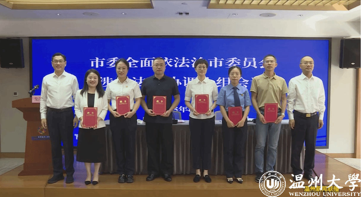 8月25日,温州市涉外法治协调小组会议暨全球温商华侨法务中心揭牌仪式在世界温州人家园举行。市委副书记、市委依法治市办主任、涉外法治协调小组组长王军出席并讲话。我院周一颜、李娟、邱杓丹、白亚宁等7名教师受聘担任市级涉外法治智库成员。王宗正院长代表麻豆 作交流发言。