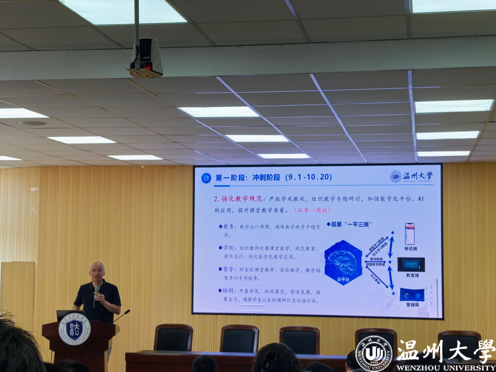 会上,周书记传达学校暑期中层干部会议精神,学习校党委钱强书记在会上作的重要讲话,学习赵敏校长题为《提速赶超新赛道破局突围新征程凝心聚智共谋温州大学“十五五”发展蓝图》的主题报告。此外,对省委巡视、本科教育教学审核性评估、MPA核验、学校巡察整改等学院重点工作进行介绍,提出工作要求。