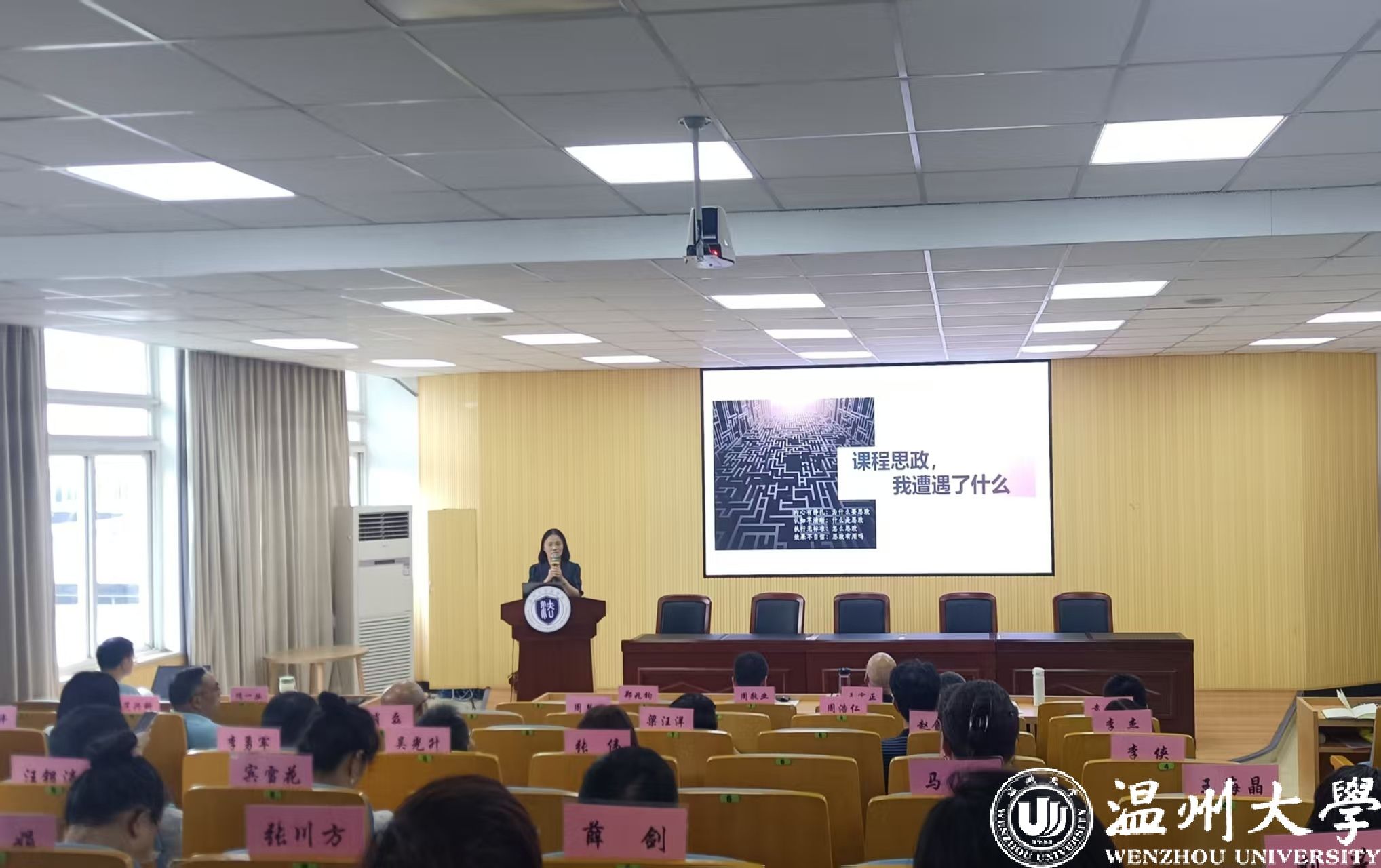 会议伊始,宪法与行政法系项一丛副教授作题为《漫谈课堂教学中的课程思政》的讲座,从课程思政的意义、内容体系、做法实例等方面娓娓道来。她结合自己的切身体验,将课堂思政与课程教学较好地融合在一起,大家深受启发。