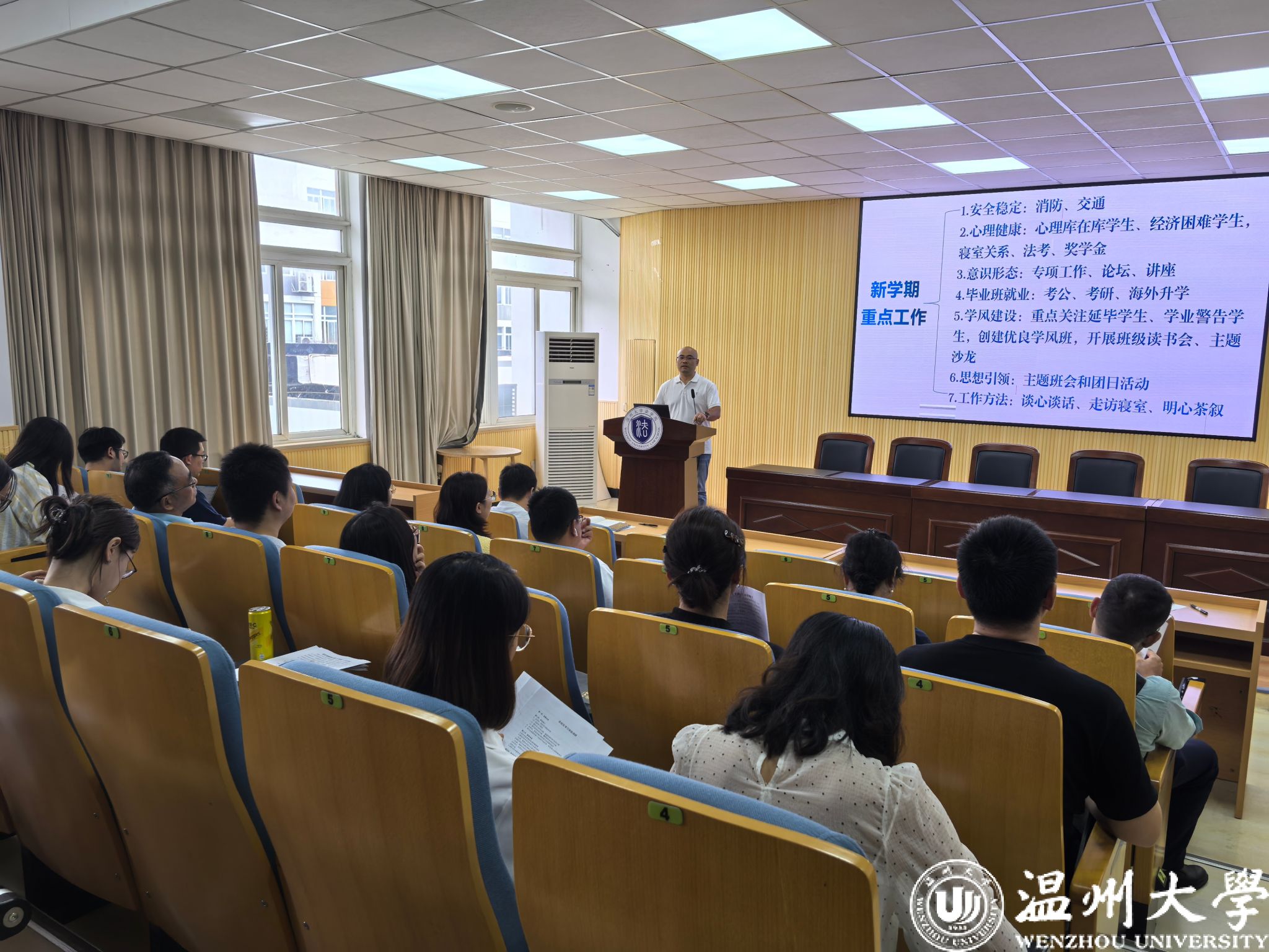 为进一步加强班主任队伍建设,有序落实新学期初各项学生工作安排,9月24日下午,我院在北校区2-301会议室召开全体班主任会议。学院党委书记周敬业、党委副书记郑兆钧及全体辅导员和班主任参加会议。