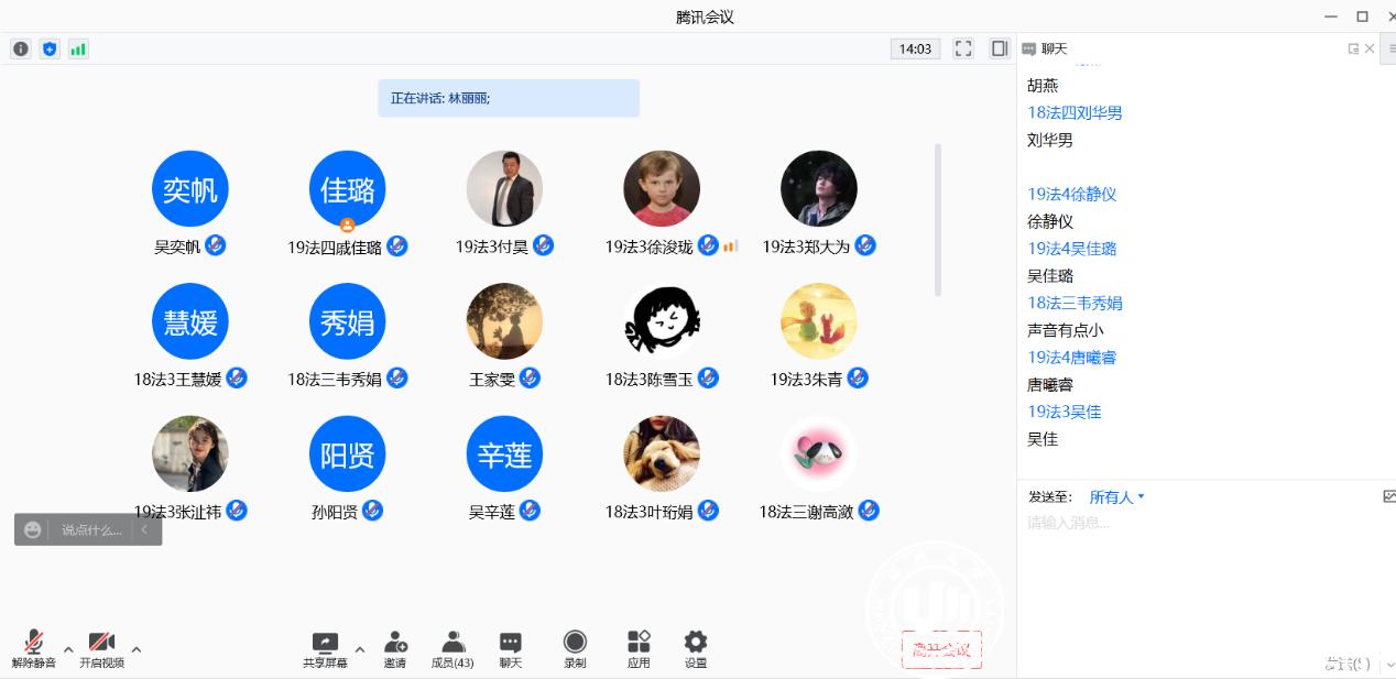 为深入学习十九届六中全会精神,进一步团结凝聚学生党员的党性修养,坚定理想信念,砥砺党员先锋模范底色,2021年12月16日下午19点30分,麻豆 本科生第三党支部在腾讯会议召开了全体党员支部大会,开展“学全会精神,当为民先锋”主题学习活动。本次会议由林丽丽老师主持,应到党员41名,实到党员41名。
