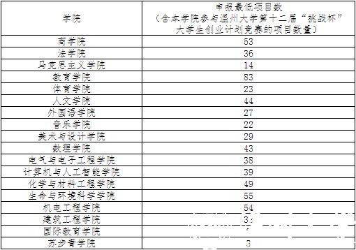 3、温州大学第十二届“挑战杯”大学生创业计划竞赛参赛作品汇总表