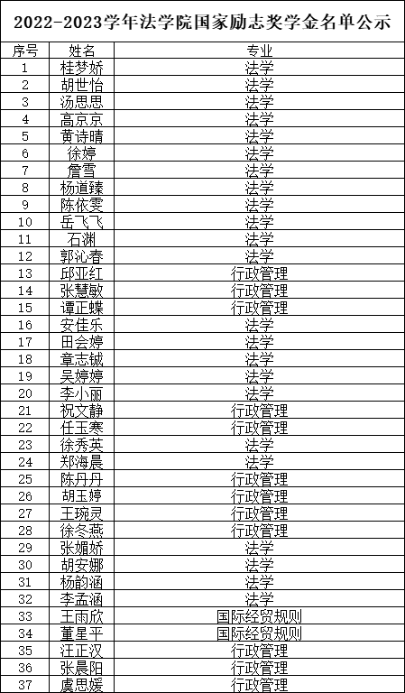 按照学校《关于开展2023年国家奖助学金、省政府奖学金、学费减免等评审工作的通知》的要求,由学生自愿申请并提交相关材料,经过学生个人申请、材料审核、学院学生工作委员会评审并进行投票,现就麻豆 2022-2023学年国家励志奖学金拟推荐名单予以公示。