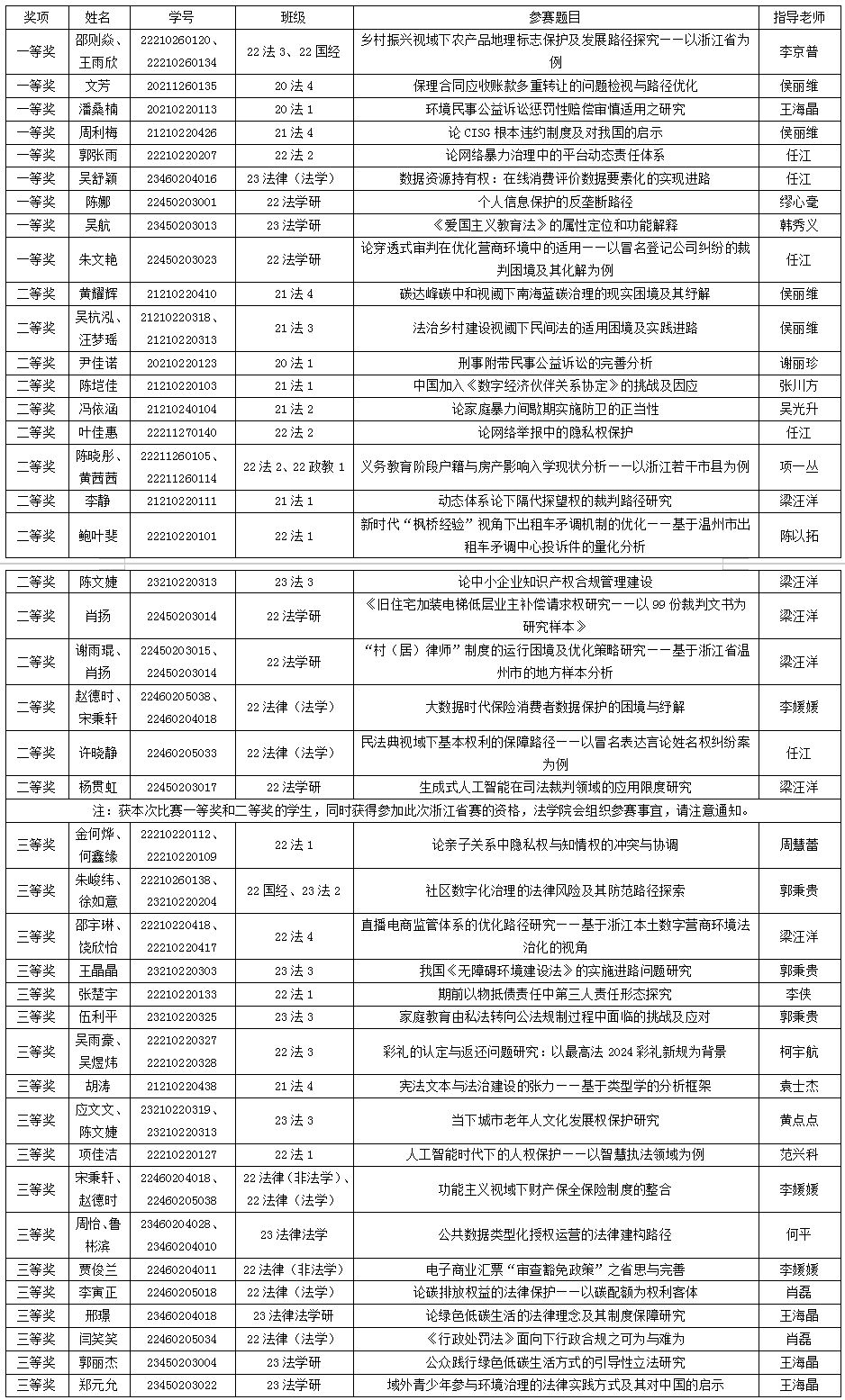 由温州大学教务处主办、麻豆 承办的温州大学第二十届大学生法律职业能力竞赛之法律征文竞赛,已于2024年3月25日圆满结束。本次竞赛有49支队伍成功报名参赛,经过专家评审,并根据温州大学教务处《关于举办温州大学第二十届大学生法律职业能力竞赛之法律征文竞赛的通知》所确立的设奖规则,评出一等奖9项、二等奖15项、三等奖18项。现将获奖名单公示如下(具体名单见附件),公示时间从即日起至2024年3月28日,欢迎广大老师、同学监督。如有老师、同学对获奖名单有异议,请与教务处实践教学科朱老师联系,联系电话:86598901。