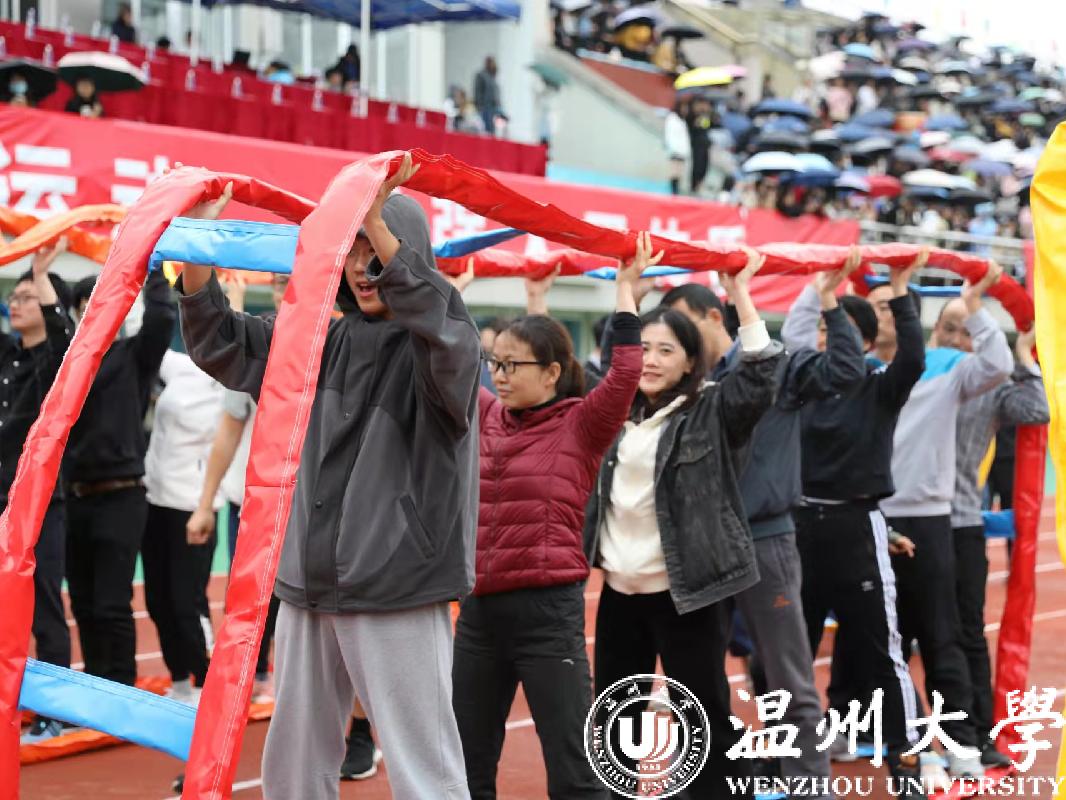 2021年11月18日上午,温州大学第四十四届运动会开幕式准时开始!伴随着进行曲的响起,国旗护卫队、红旗方队昂首挺胸,迈着坚定的步伐走来,紧随其后的是青春洋溢的鲜花队。他们以自信的步伐,动感的舞姿展现着温大学子的蓬勃生机。鲜艳的五星红旗迎风飘扬,耳边回荡着铿锵有力的国歌,随着校长赵敏讲话、运动员代表、裁判员代表宣誓的结束,温州大学第四十四届运动会正式开始!