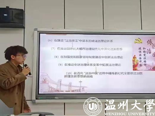 其中,21法学1班从同学们自身对习近平法治思想的了解进行引入,充分吸引了在场同学的兴趣。向大家介绍了习近平法治思想的提出、产生过程、核心要义等,引领同学们展开更深入的思考。最后由同学们上台进行演讲,大家或激情蓬勃地讲述了习近平法治思想的伟大意义,或用深沉内敛的话语娓娓道来自己对于习近平法治思想的理解。21法学3班的同学在纸上写下了习近平法治思想在日常生活中的体现和自己对中国法治建设的感受。