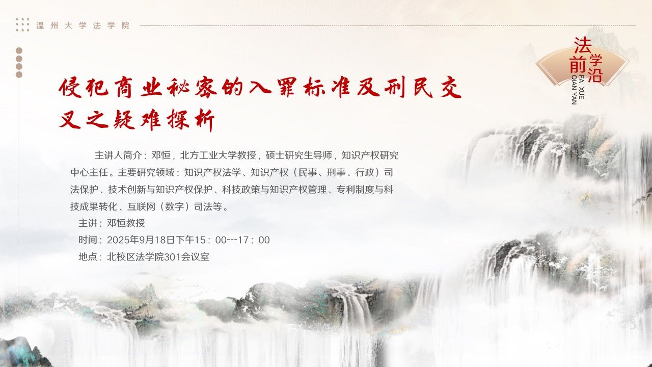 讲座预告|法学前沿讲座第三期第1讲:侵犯商业秘密的入罪标准及刑民交叉之疑难探析