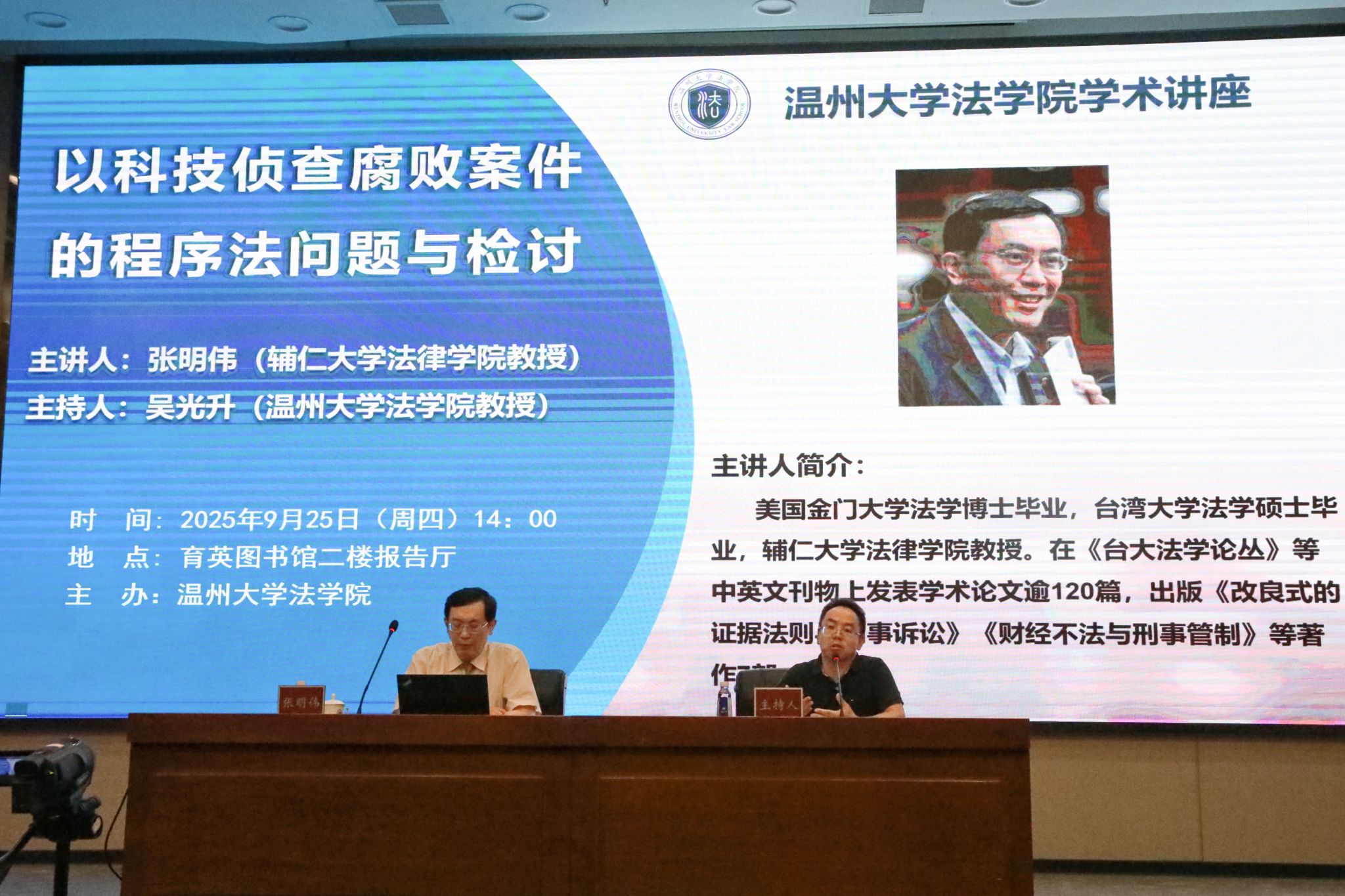 2025年9月25日下午,由麻豆 主办的学术讲座《以科技侦查腐败案件的程序法问题与检讨》在育英图书馆二楼报告厅顺利举行。此次讲座特邀辅仁大学法律学院张明伟教授主讲,由麻豆 吴光升教授主持并致欢迎词,吸引了众多师生到场聆听。
