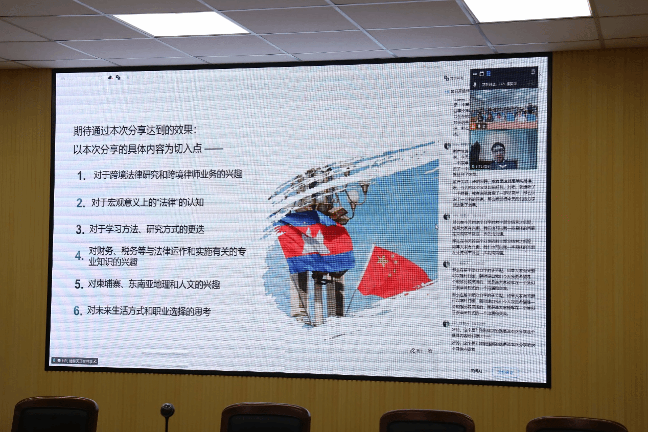讲座最后,檀律师全面归纳了中资企业在柬埔寨投资可能面临的五类主要风险,涵盖政治、经济、法律等多个层面,为在场同学构建起系统而清晰的风险认知框架。